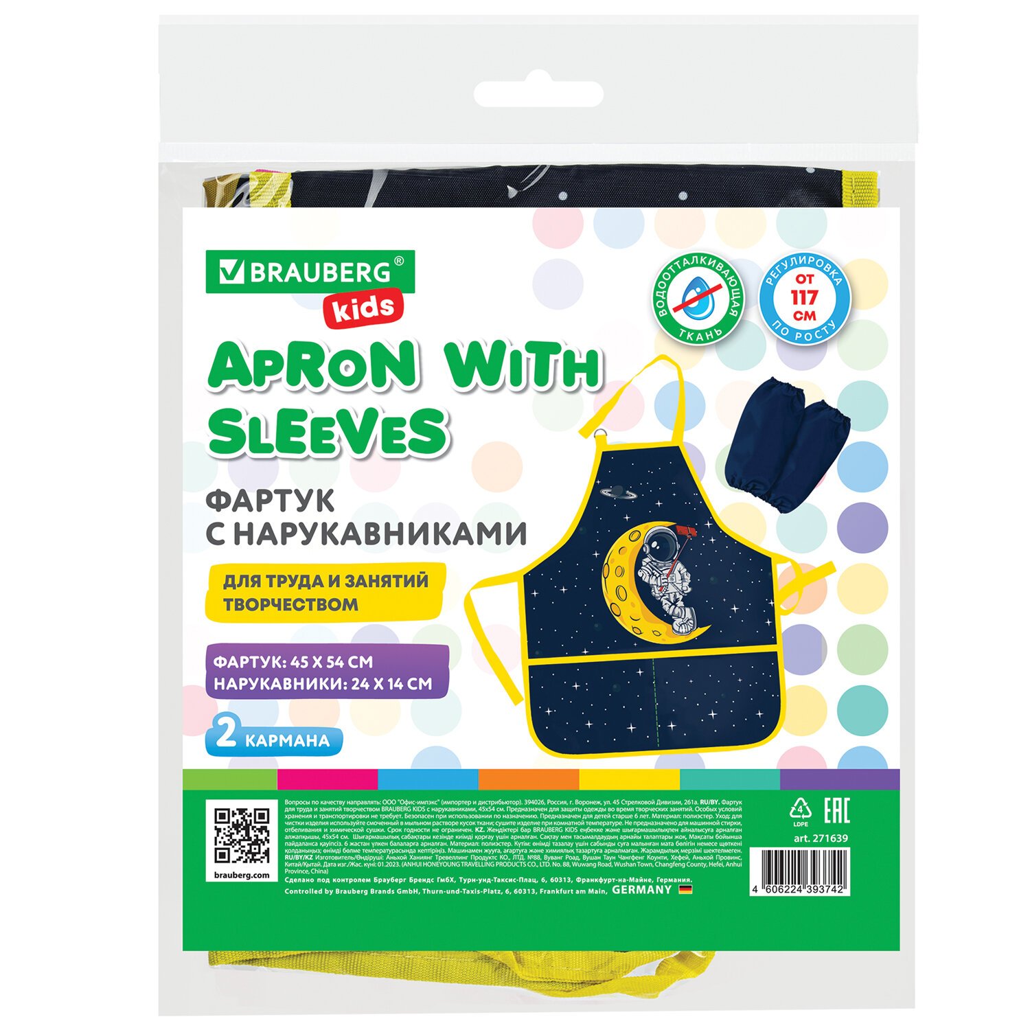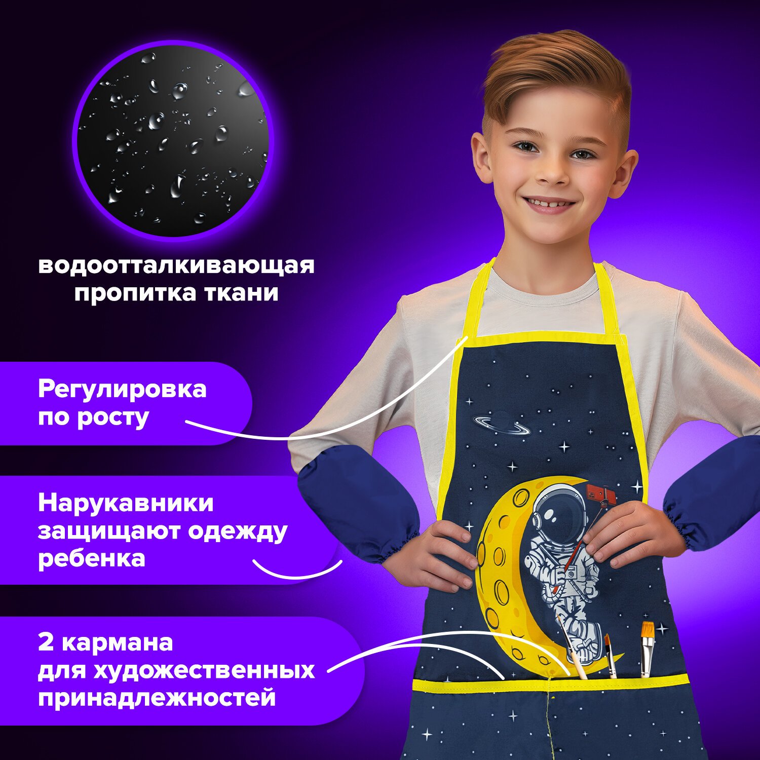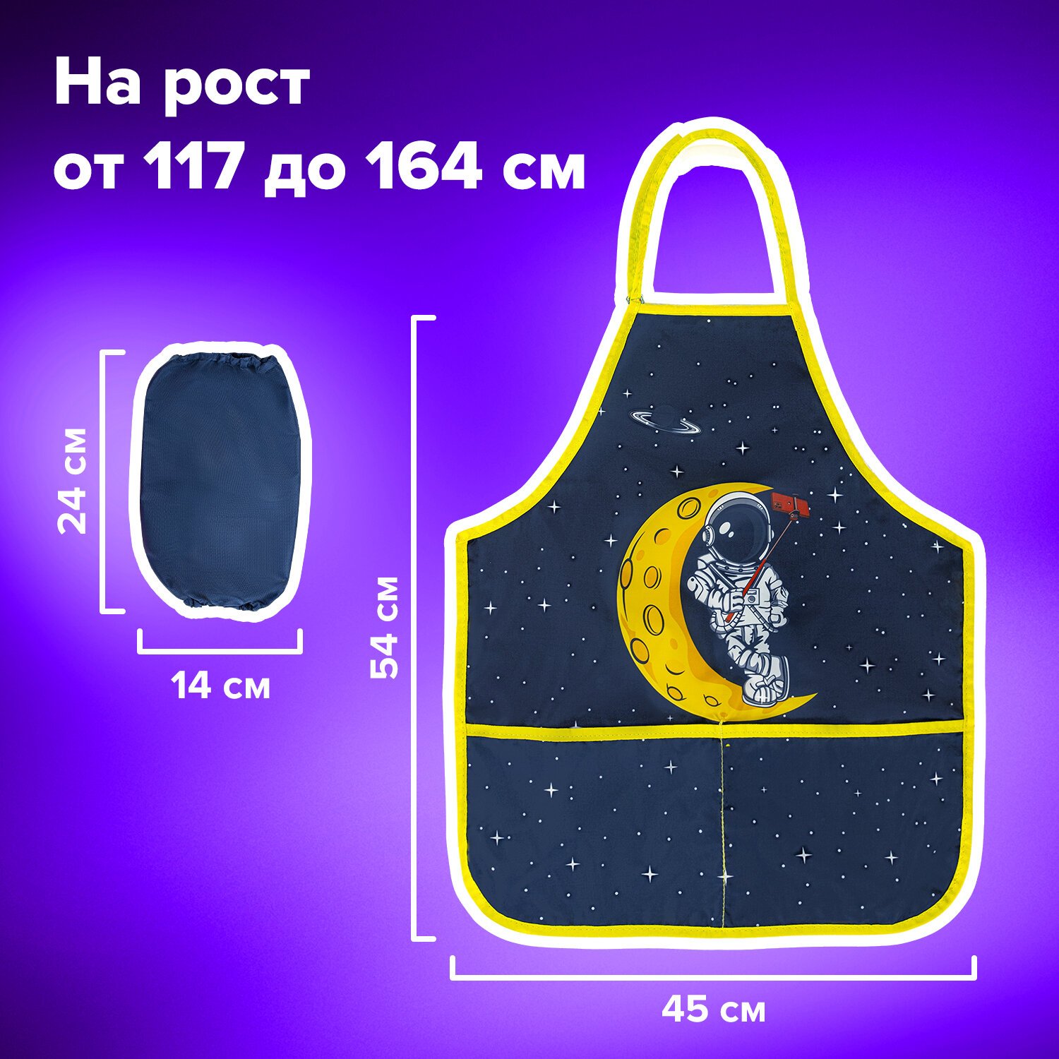 Фартук с нарукавниками для уроков труда BRAUBERG KIDS, 45x54 см, 2 кармана, "Spaceman", 271639