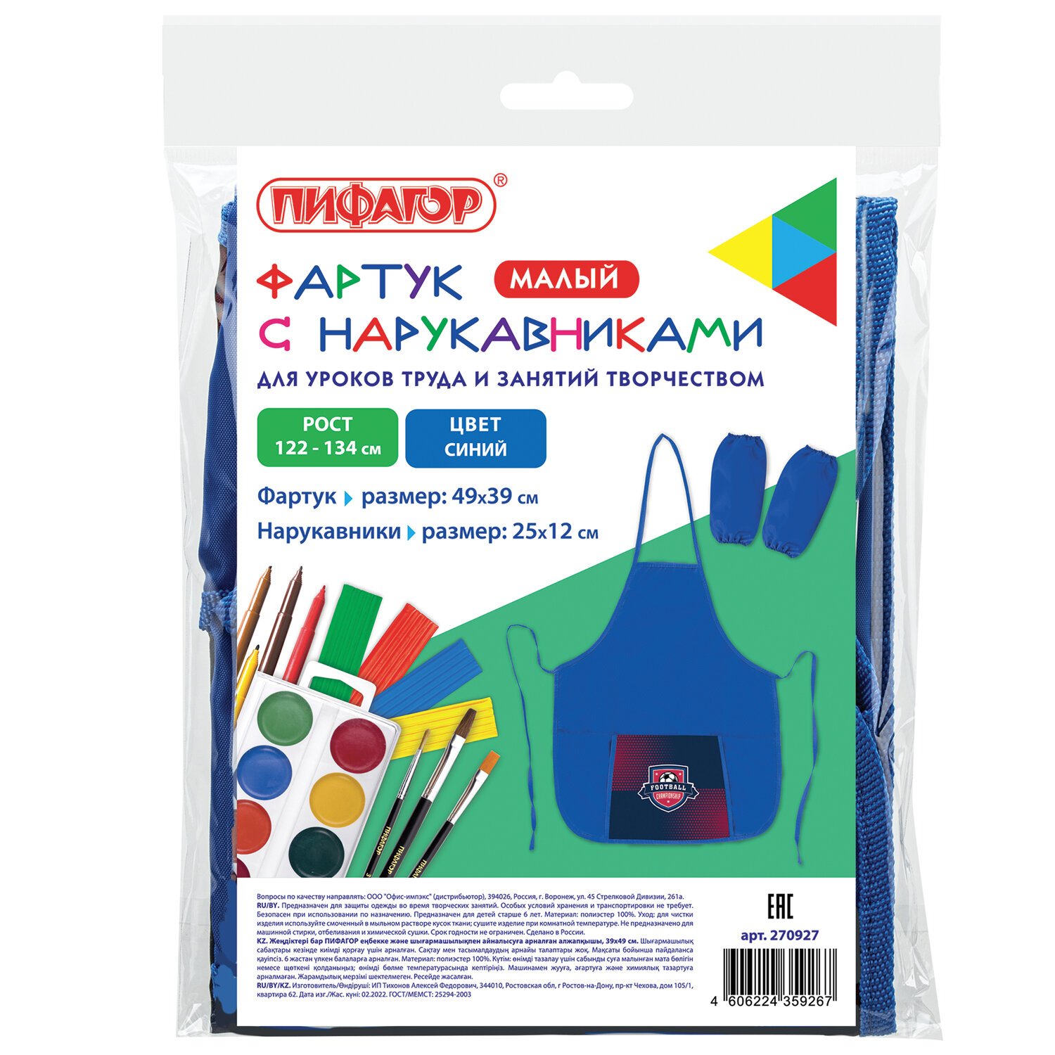 Фартук с нарукавниками ПИФАГОР - незаменимая вещь для защиты одежды на уроках труда и занятиях творчеством. Изготовлен из водоотталкивающего материала, предусмотрен для многоразового использования.