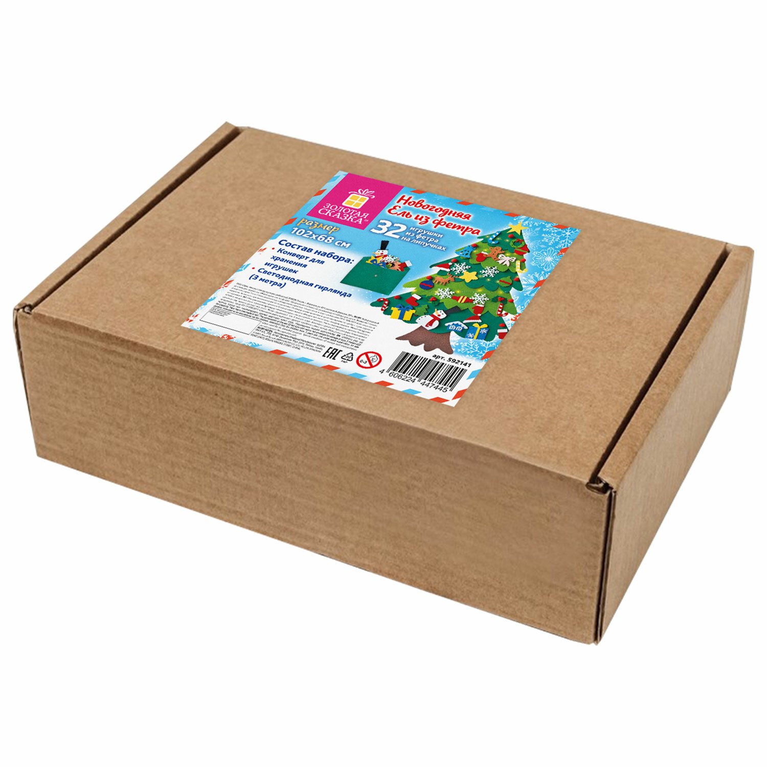 Фетровая ель с игрушками 102х68 см, 32 украшения, 3 м гирлянда, ЗОЛОТАЯ СКАЗКА, 592141