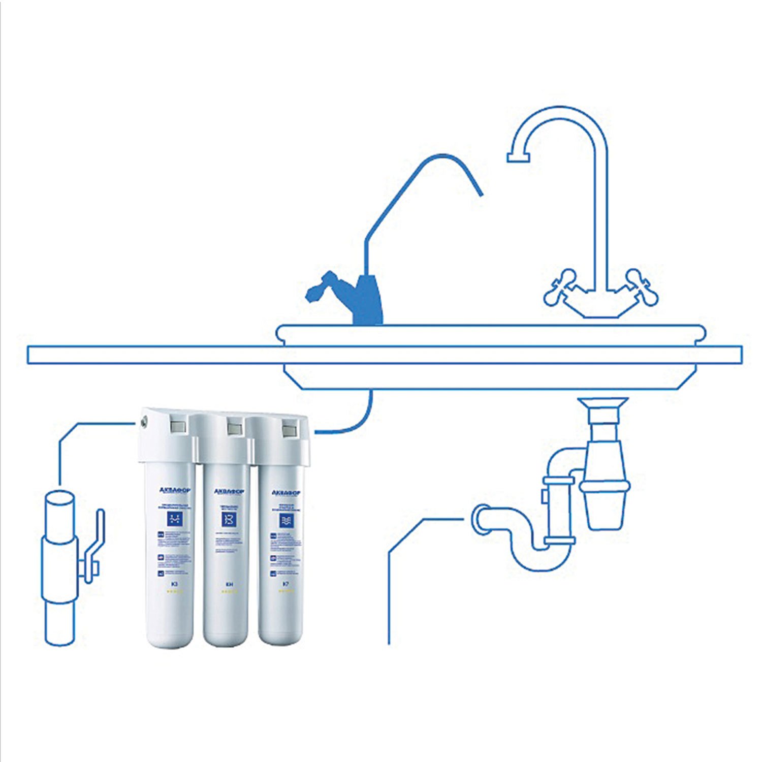 Ресурса 6000 литров хватит на год большой семье (до 5 человек). Заменить картриджи не составит труда: они легко откручиваются по щелчку и исключают контакт с содержимым фильтра. Фильтр удобно размещается под мойкой даже на маленькой кухне.