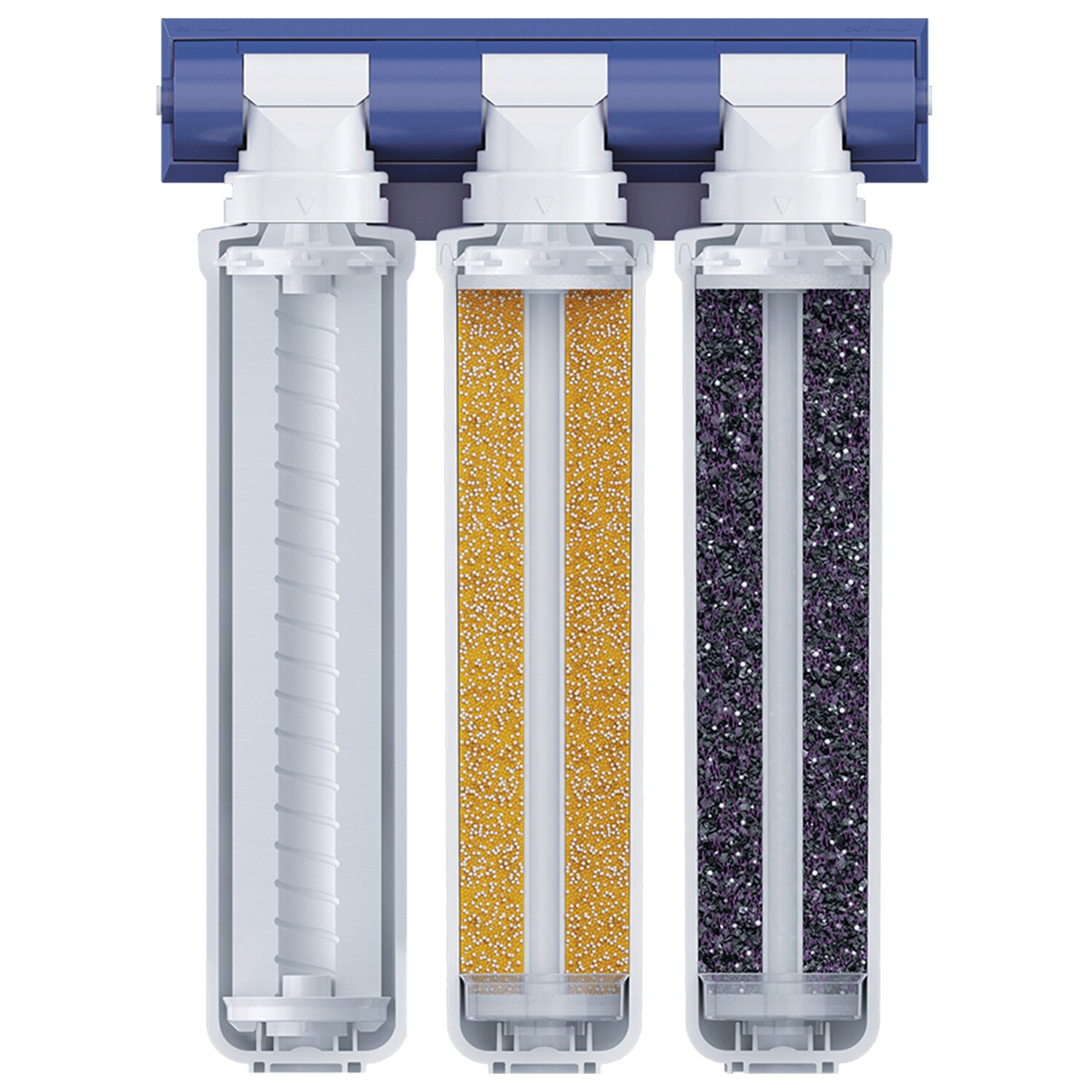 Компактный проточный фильтр для жесткой воды без крана в комплекте. Позволяет забыть о накипи в чайнике, очищает воду от тяжелых металлов, хлора, посторонних привкусов и запахов. Производительность системы — 2 л/мин, ресурс — 10 000 литров.