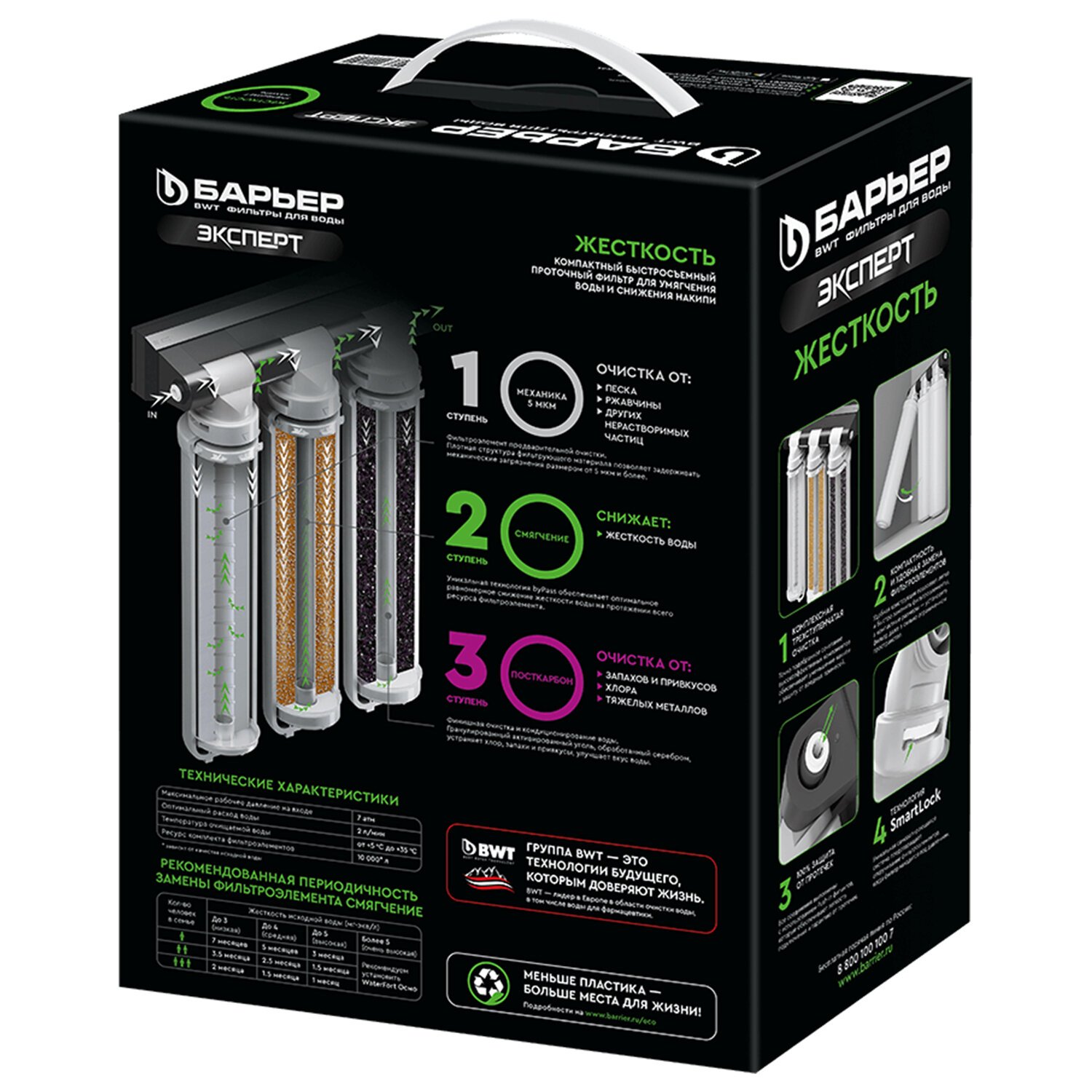 Фильтр для воды БАРЬЕР "ЭКСПЕРТ Жесткость", 3 ступени, ресурс 10000 л, Н221Р12
