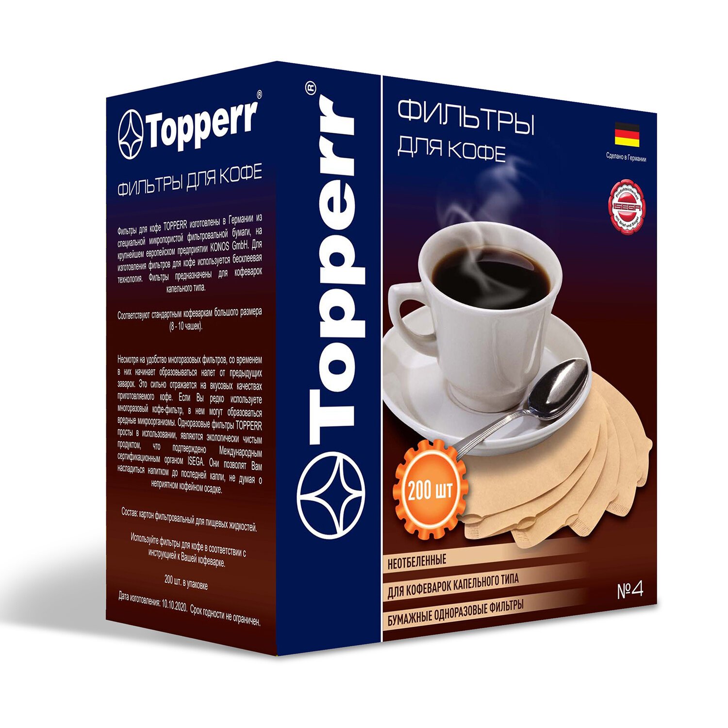 Фильтры для кофе TOPPERR® изготовлены из специальной фильтровальной бумаги, произведенной в Германии, крупнейшей фабрикой Европы KONOS GmbH. Фильтры предназначены для маленьких кофеварок капельного типа.