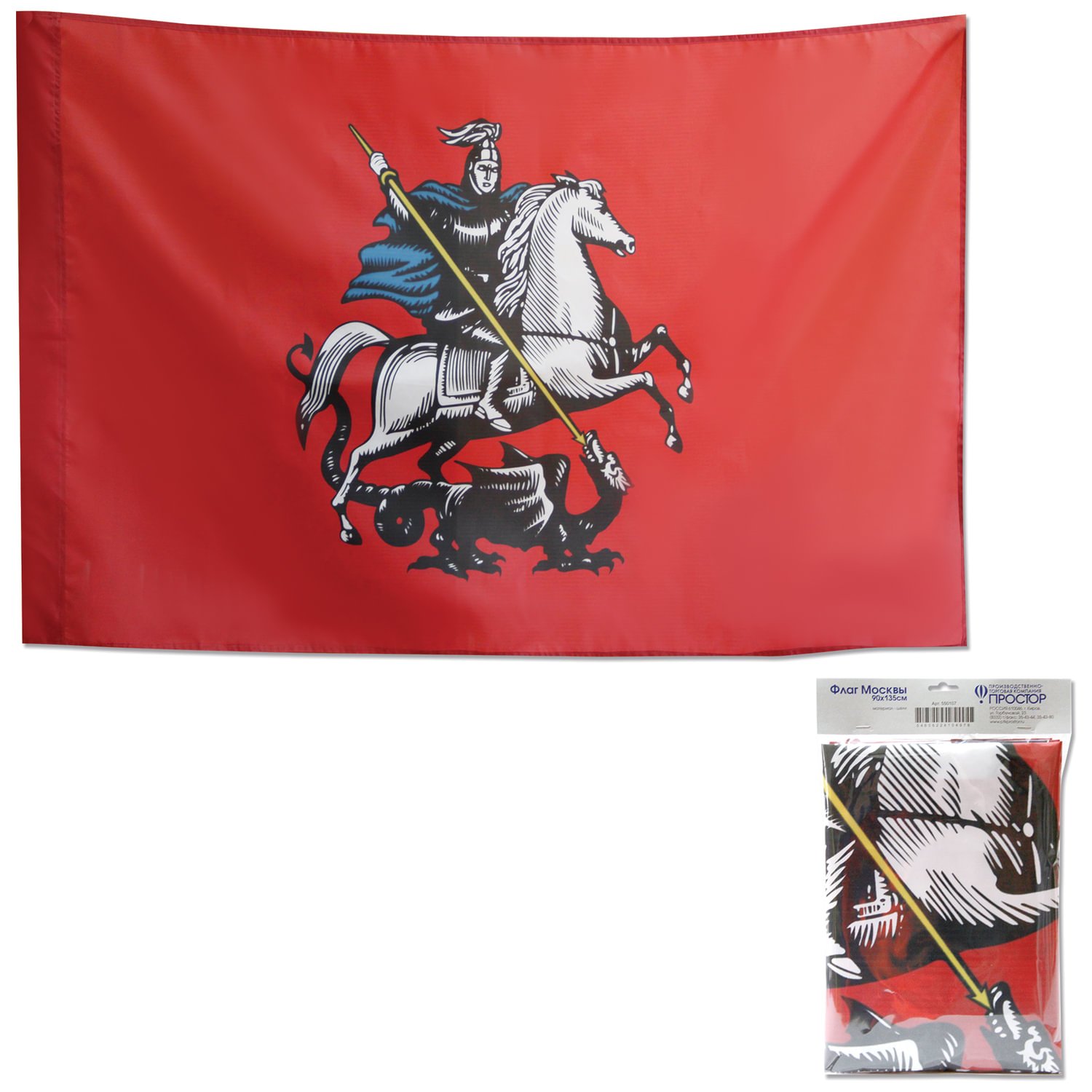 Флаг Москвы, 90х135 см, карман под древко, упаковка с европодвесом