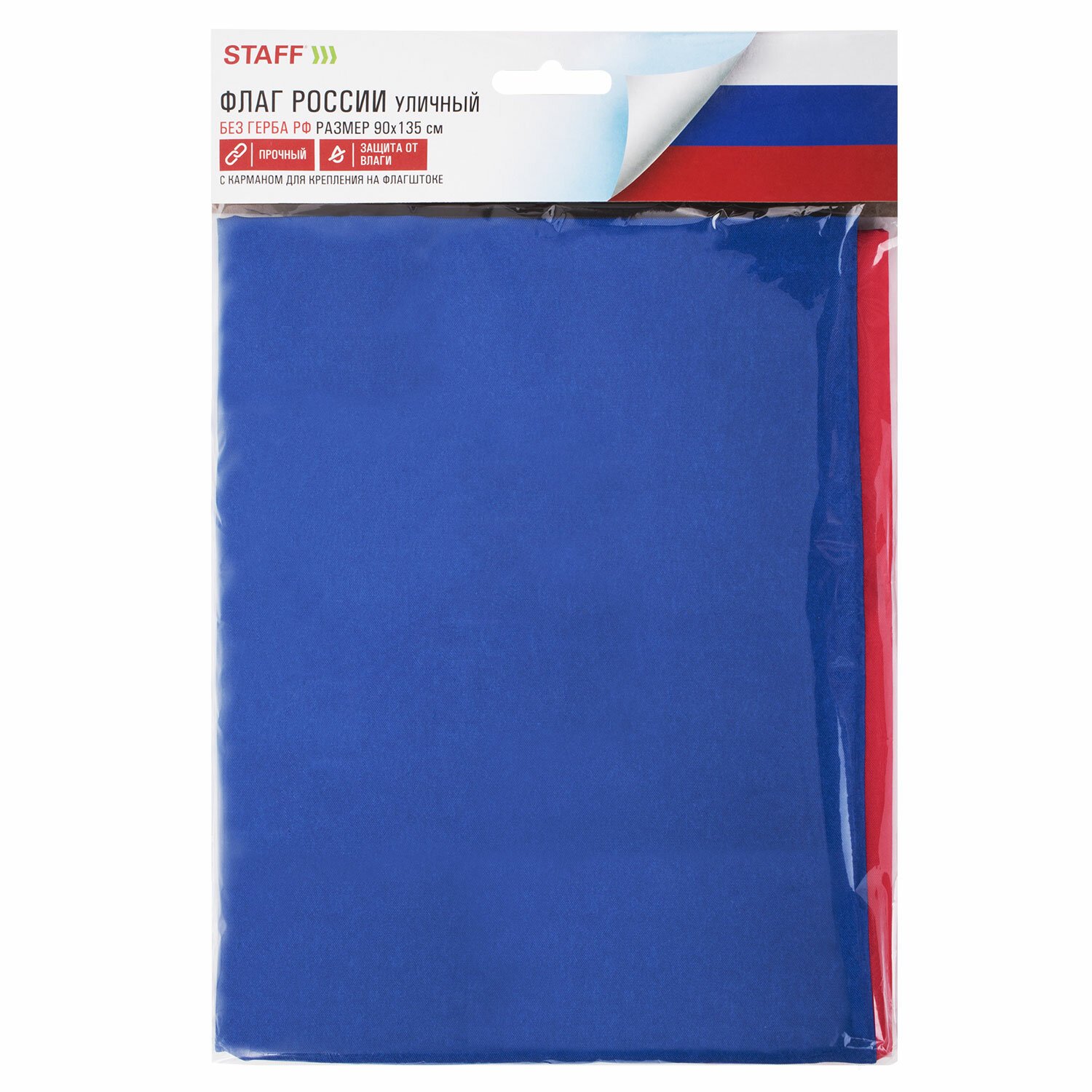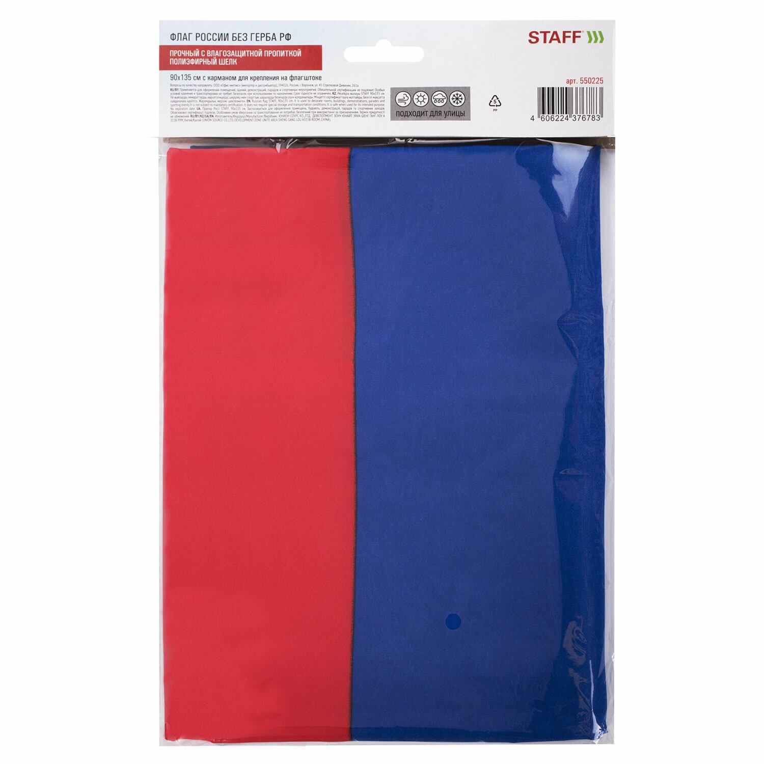 Флаг России 90х135 см без герба, ПРОЧНЫЙ с влагозащитной пропиткой, полиэфирный шелк, STAFF, 550225