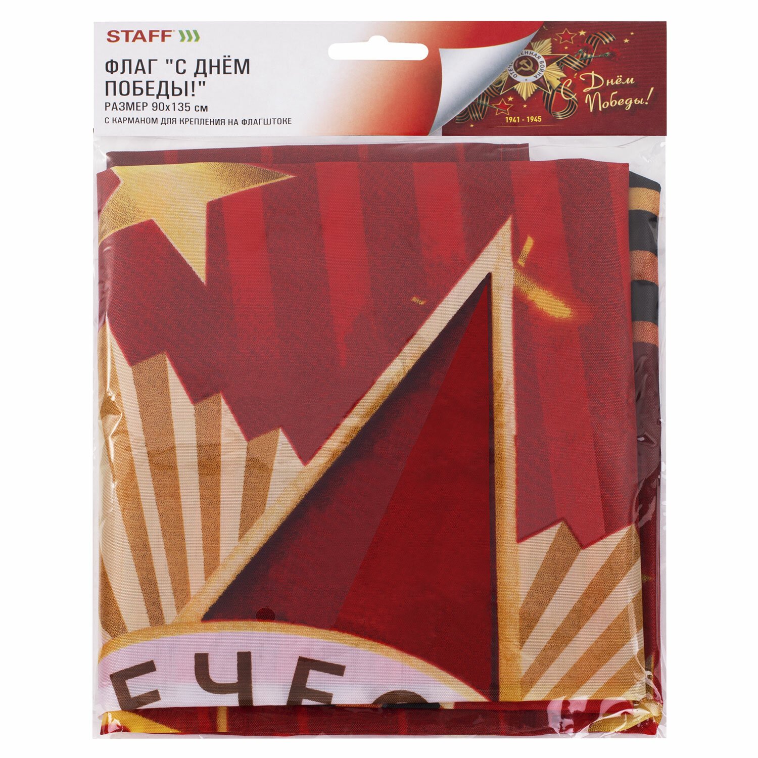 Флаг "С Днём Победы!" 90х135 см, полиэстер, STAFF, 550238