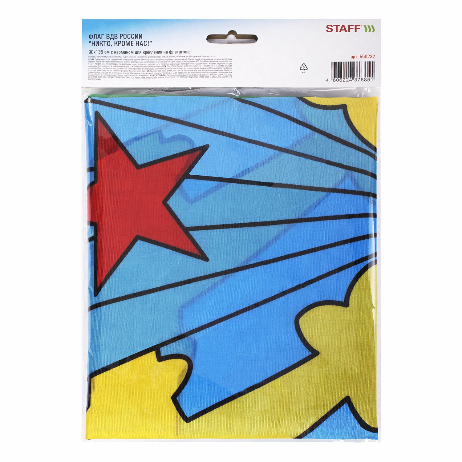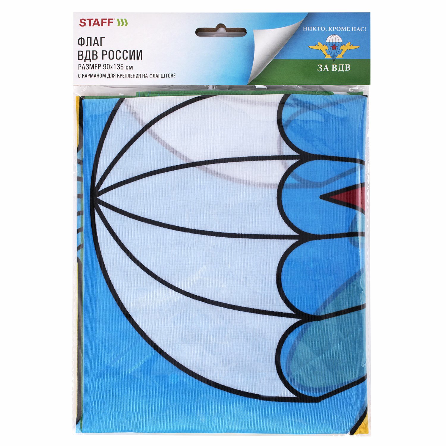 Флаг ВДВ России "НИКТО, КРОМЕ НАС!" 90х135 см, полиэстер, STAFF, 550232