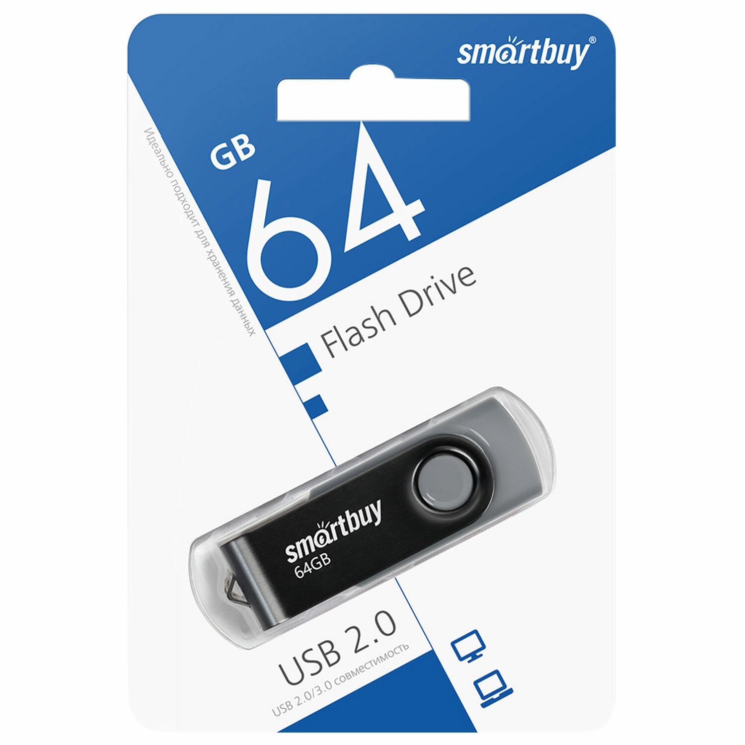 Флеш-диск 64 GB SMARTBUY Twist USB 2.0, черный, SB064GB2TWK