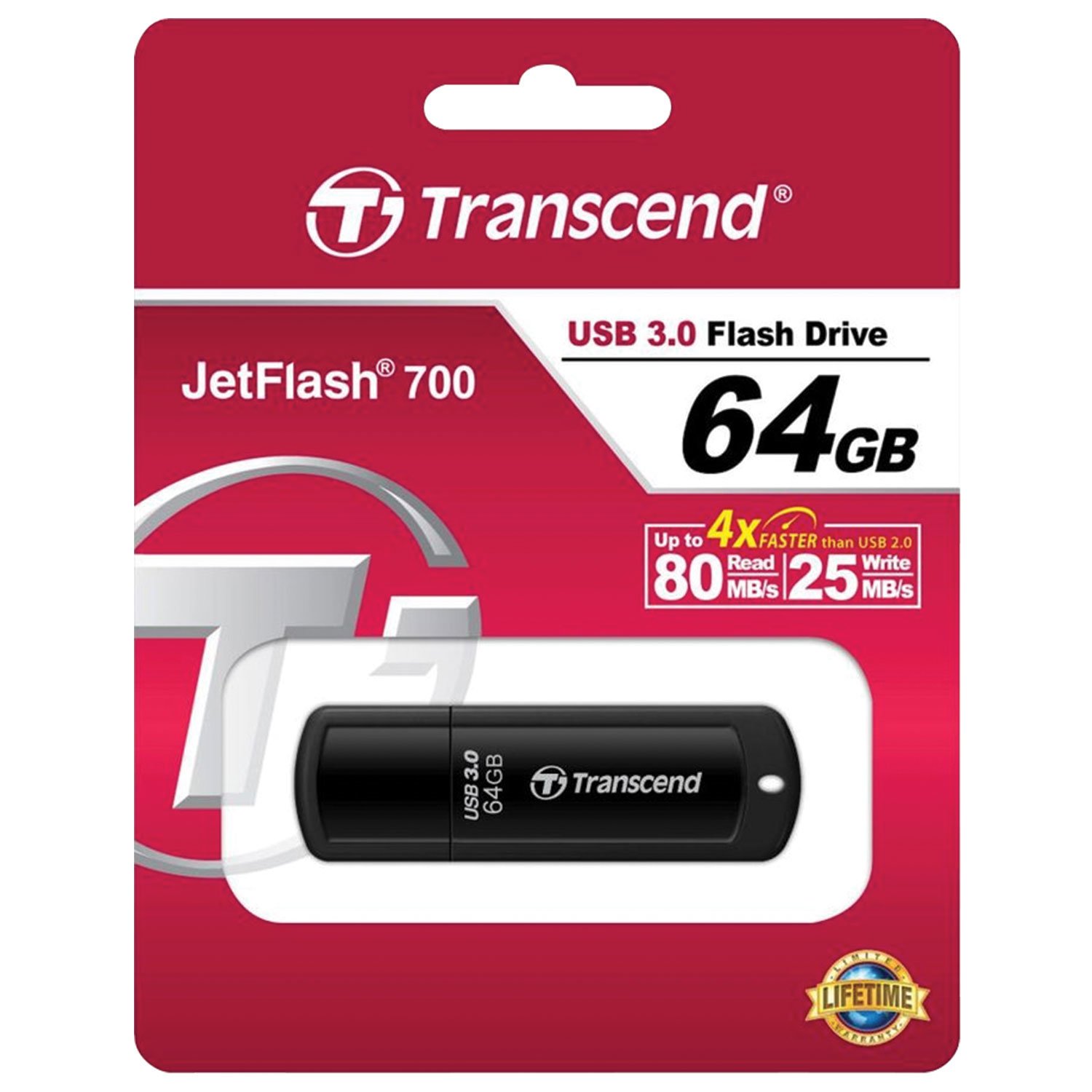 Флеш-диск 64 GB TRANSCEND Jetflash 700 USB 3.0, черный, TS64GJF700