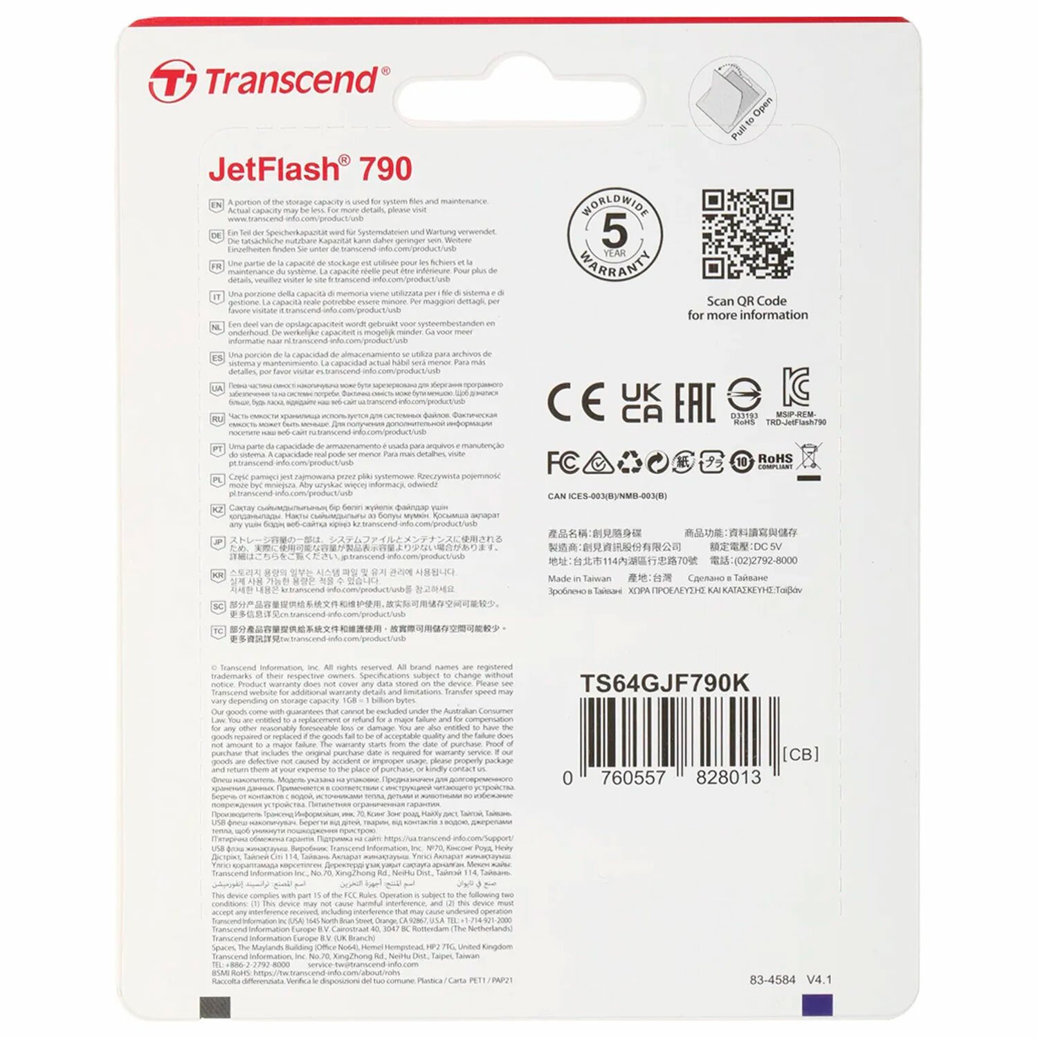 Флеш-диск 64 GB TRANSCEND JetFlash 790, USB 3.1, черный, TS64GJF790K