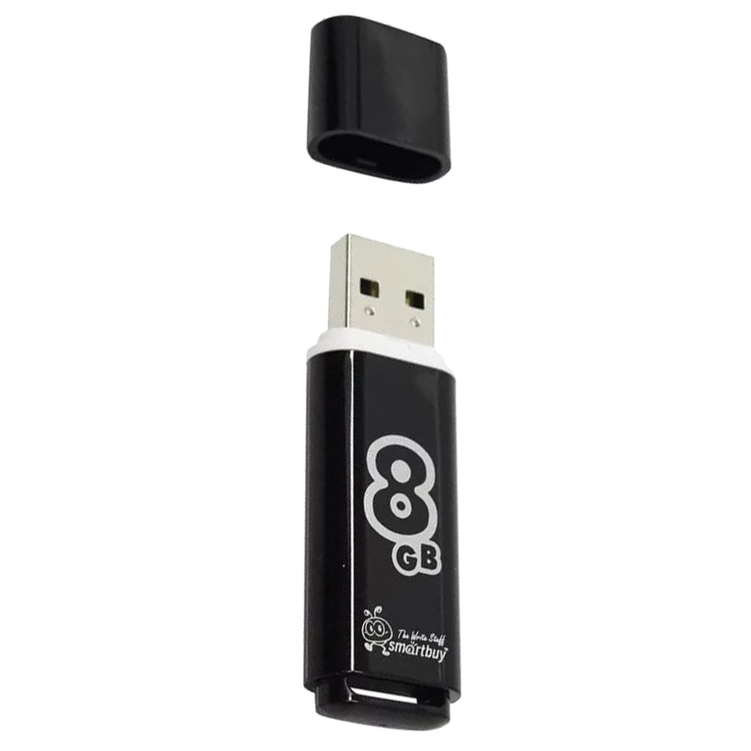 Флеш-диск 8 GB, SMARTBUY Glossy, USB 2.0, черный, SB8GBGS-K