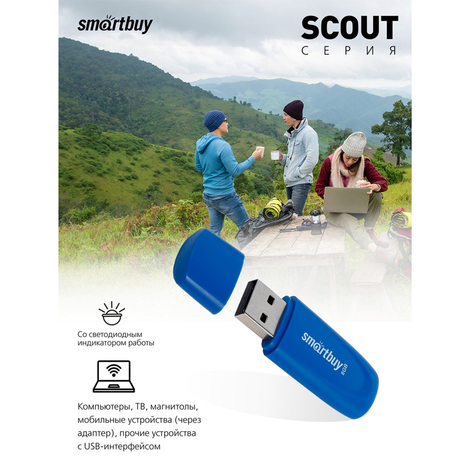 SMARTBUY Scout – универсальный флеш-накопитель, прост в использовании, позволяет легко и быстро перенести файлы между устройствами.