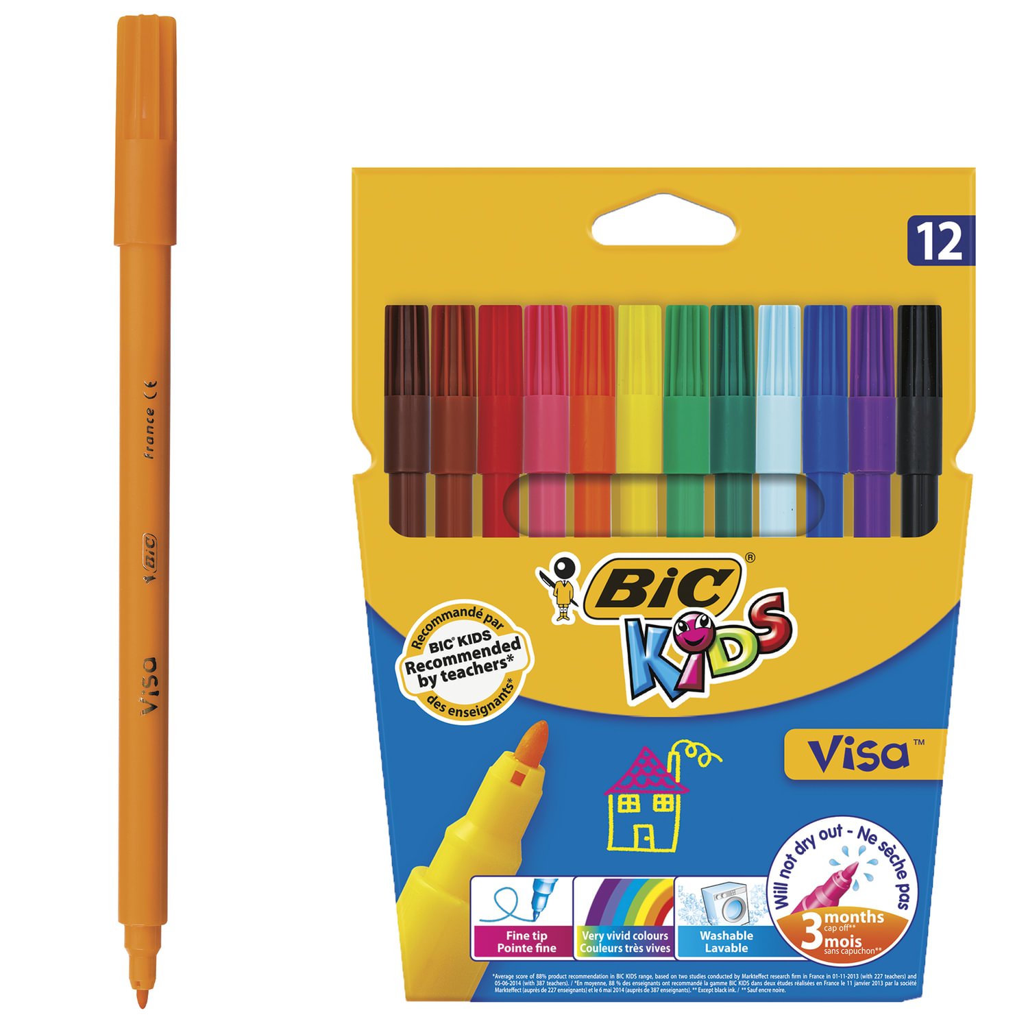Фломастеры BIC "Kids Visa", 12 ЦВЕТОВ, суперсмываемые, вентилируемый колпачок, европодвес, 889695, 888695