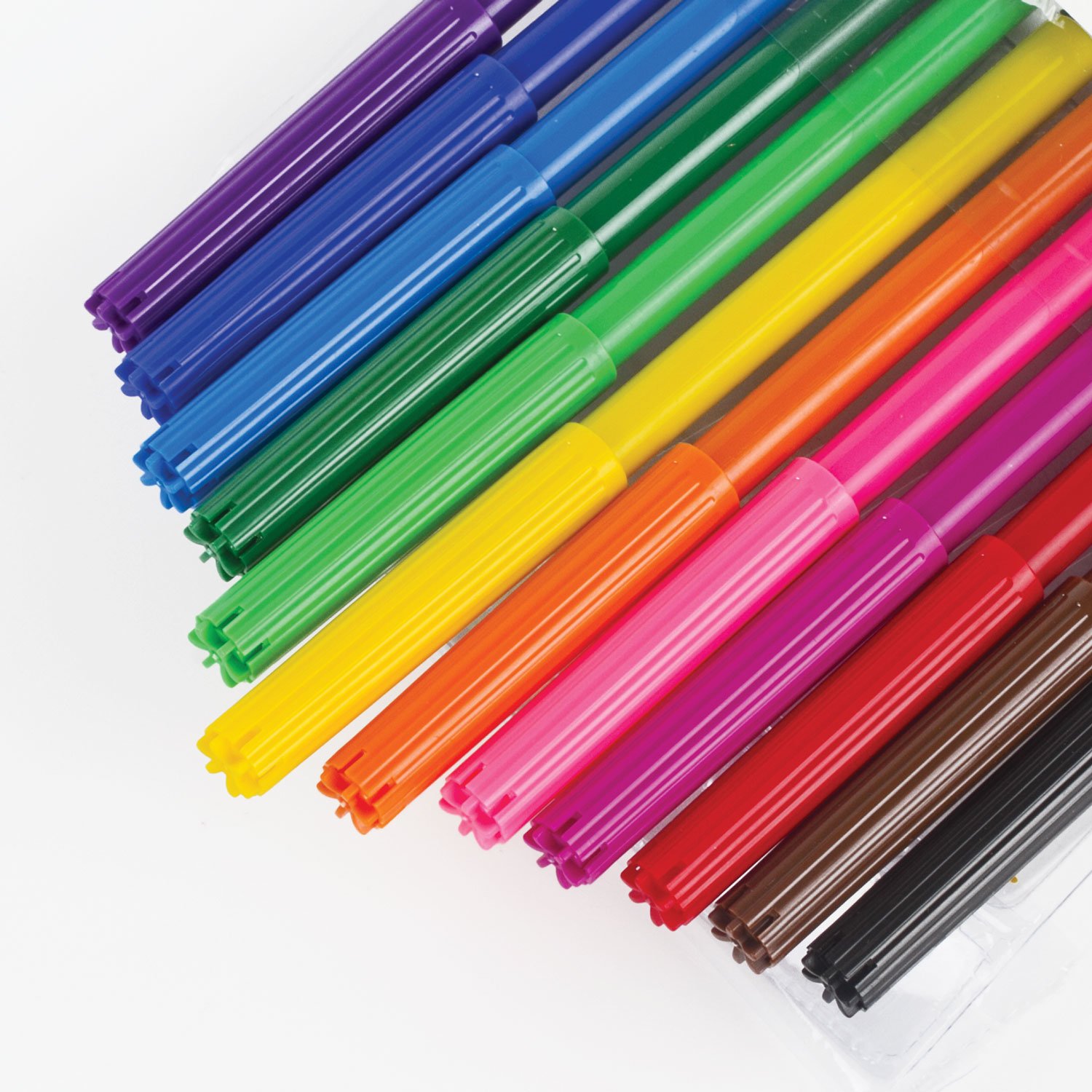 Обладают яркими насыщенными цветами в количестве 12 штук. Удобная круглая форма корпуса, длина которого 139 мм, а диаметр - 8,5 мм. Благодаря толщине линии письма 1 мм и диаметру пишущего узла 2,1 мм процесс раскрашивания становится легким. Длина письма составляет 600 м: такого расхода хватит надолго. Фломастеры изготовлены на водной основе, поэтому они безопасны и легко смываются с большинства материалов и кожи. Наконечник, устойчивый к продавливанию, не проваливается внутрь корпуса и не деформируется даже при сильном нажатии. Полипропиленовый корпус значительно продлевает срок службы фломастеров. Колпачок имеет специальные прорези для вентиляции, которые способствуют прохождению воздуха при попадании в дыхательные пути малыша. Рекомендованы для детей от 3-х лет.