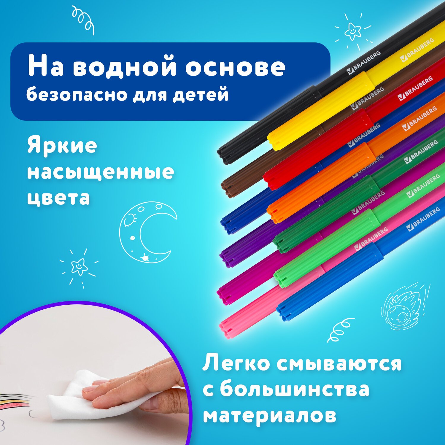 Рисование фломастерами BRAUBERG "Академия" способствует развитию воображения, мелкой моторики рук у детей, координации движений кистей и пальцев и повышает способность концентрироваться и фокусировать внимание.