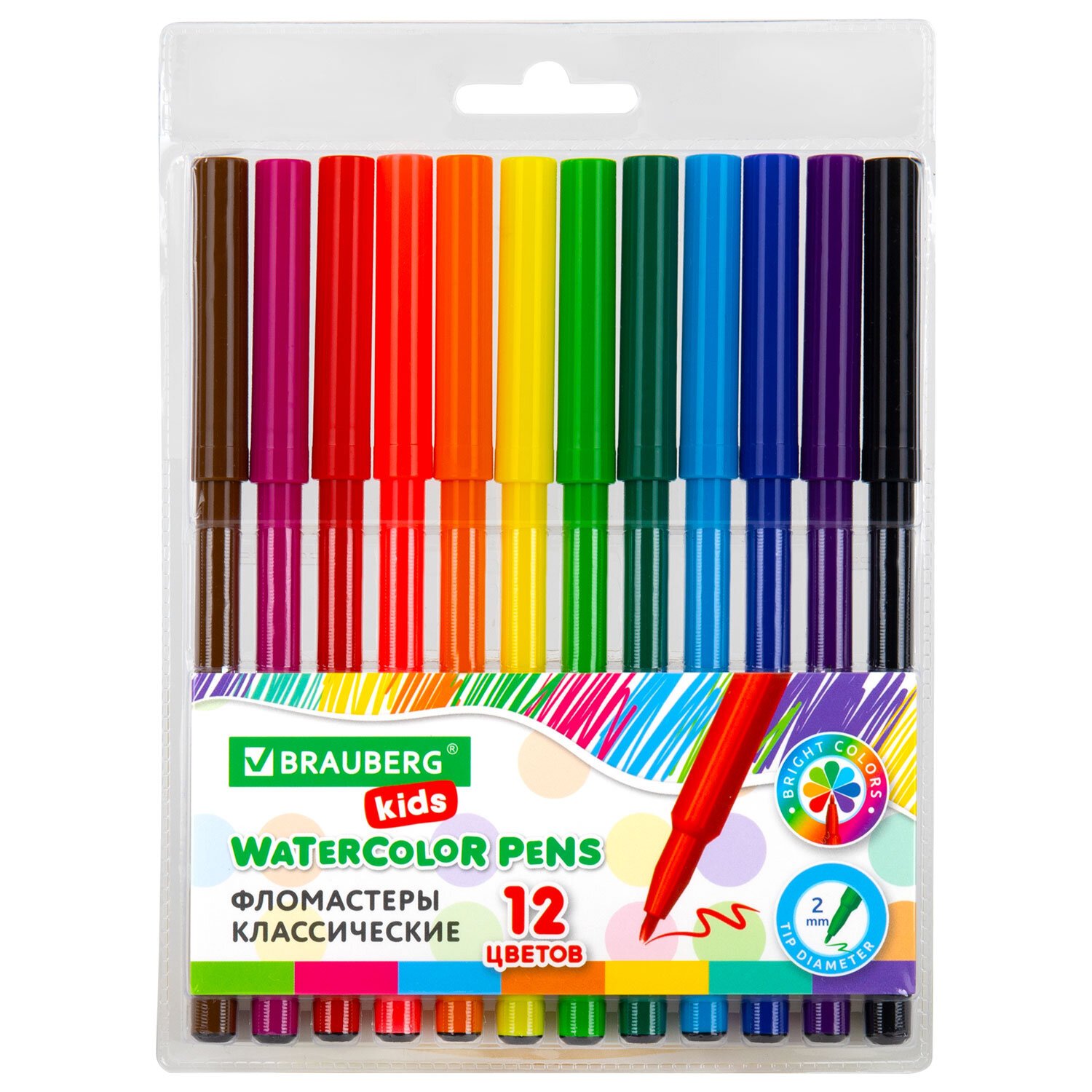 Фломастеры BRAUBERG KIDS КЛАССИЧЕСКИЕ 12 цветов, вентилируемый колпачок, ПВХ-упаковка, 152601