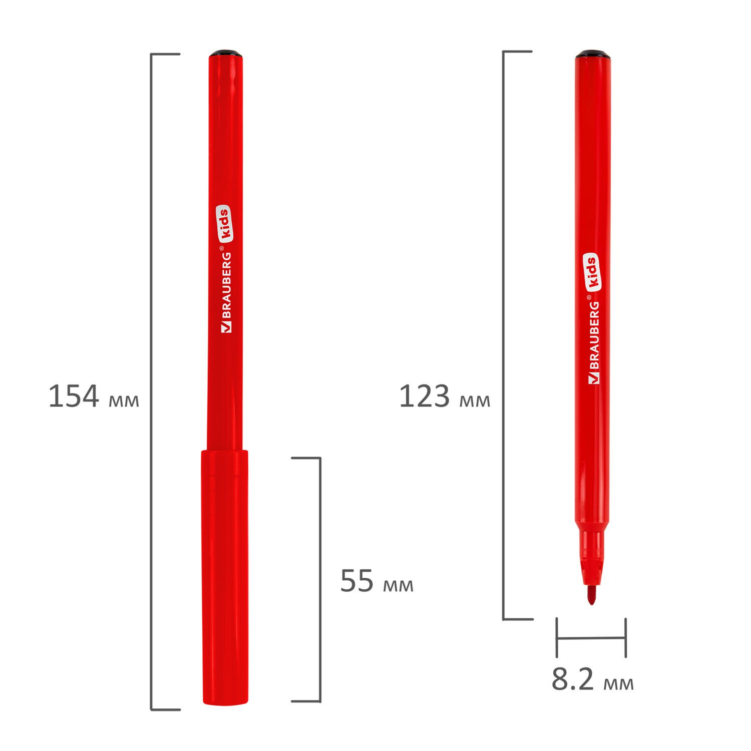 Имеют удобную круглую форму. Длина корпуса - 154 мм, диаметр - 8,2 мм. Благодаря линии письма 1-2 мм процесс раскрашивания становится легким и приятным. Быстросохнущие чернила предотвращают смазывание рисунка. Благодаря полипропиленовому корпусу срок службы фломастеров значительно увеличивается. Колпачок имеет специальные прорези для вентиляции. Фломастеры обладают экономным расходом чернил, при этом длина линии письма достигает 500 метров. Рекомендованы для детей от 3-х лет. Рисование фломастерами BRAUBERG KIDS способствует развитию воображения, мелкой моторики рук у детей, координации движений кистей и пальцев и повышает способность концентрироваться и фокусировать внимание.