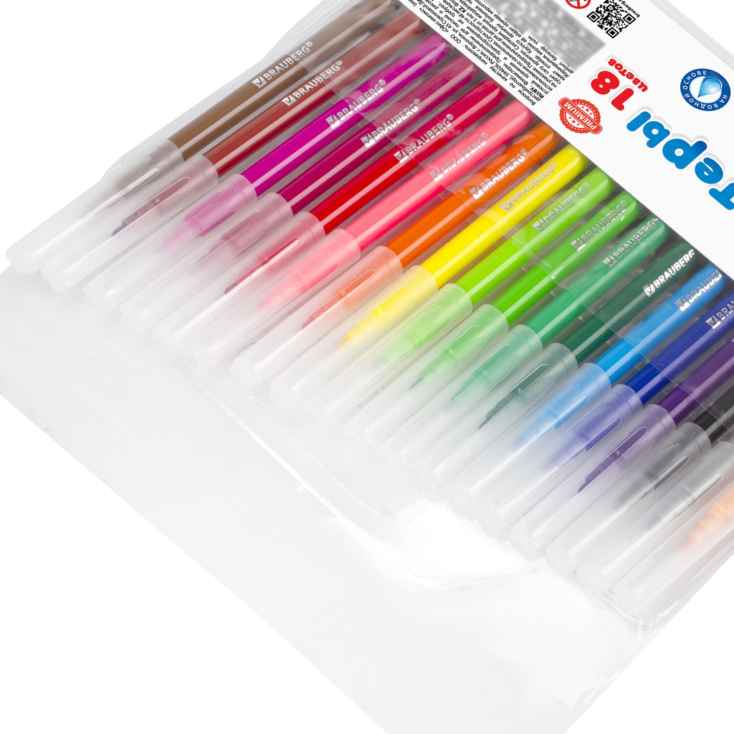 Фломастеры BRAUBERG "PREMIUM", 18 цветов, КОРПУС С ПЕЧАТЬЮ, вентилируемый колпачок, ПВХ-упаковка с европодвесом, 151943