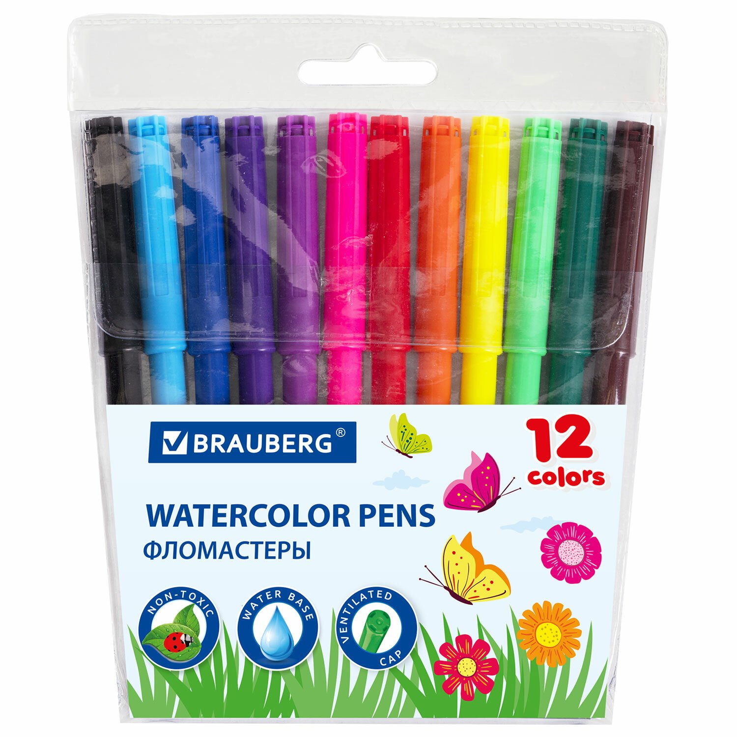 Фломастеры BRAUBERG "АКАДЕМИЯ", 12 цветов, вентилируемый колпачок, ПВХ упаковка, 151411