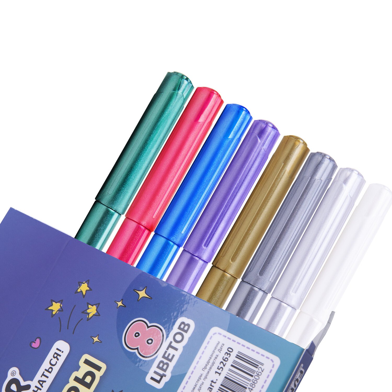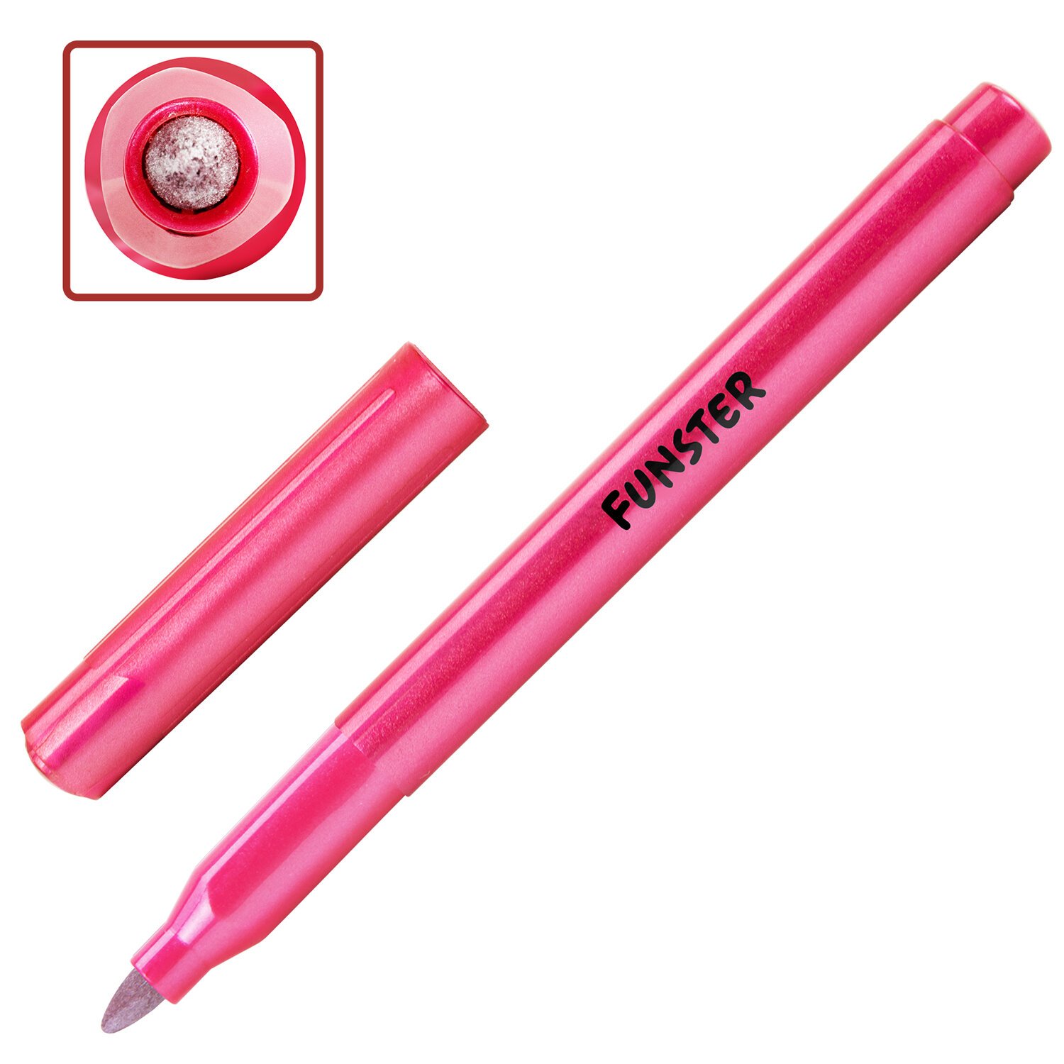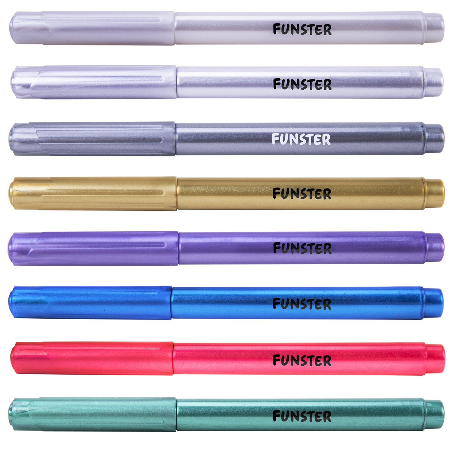 Фломастеры FUNSTER (ФАНСТЕР) "METALLIC" с эффектом металлик. Чернила на водной основе практически не имеют запаха, не токсичны и легко смываются с большинства материалов и тканей.