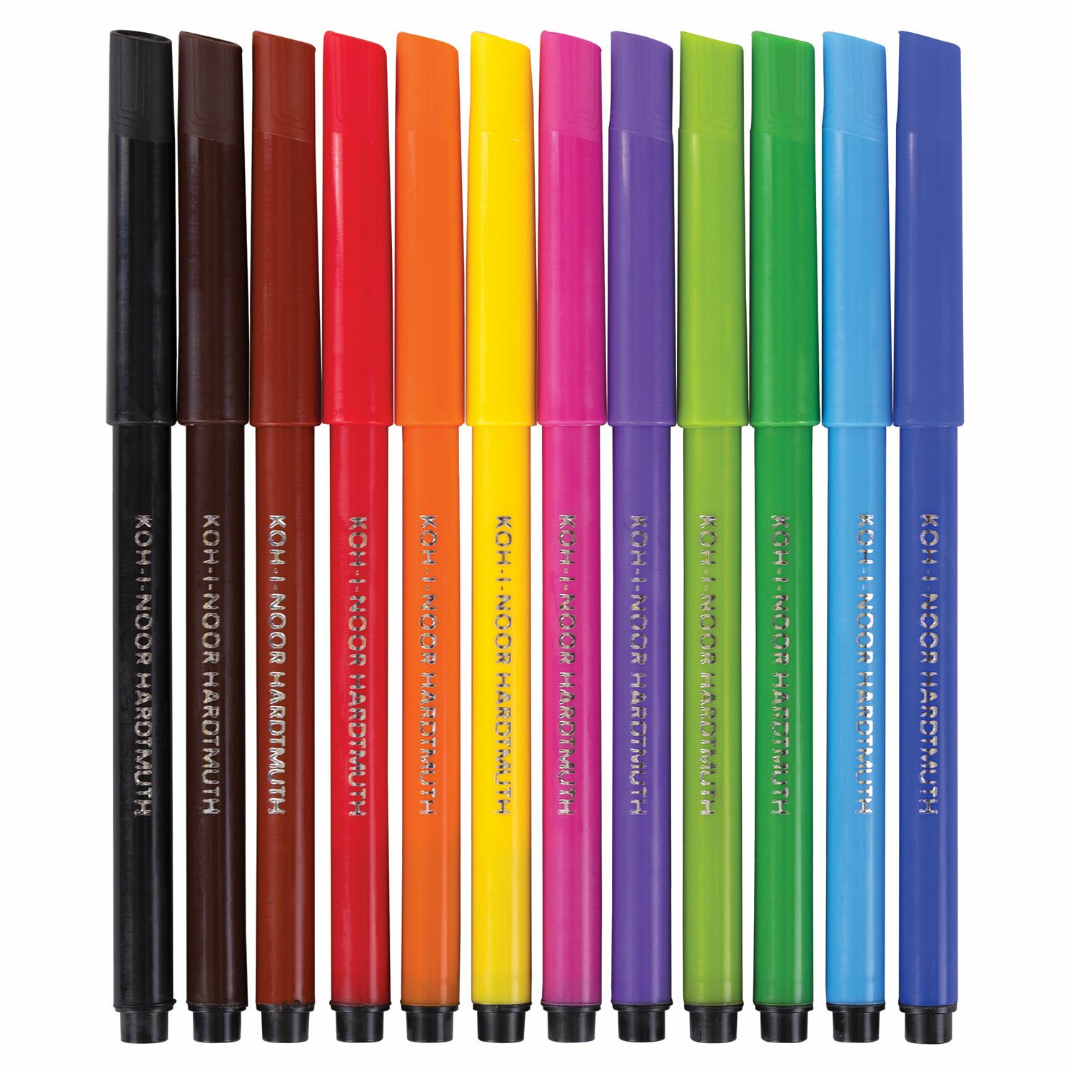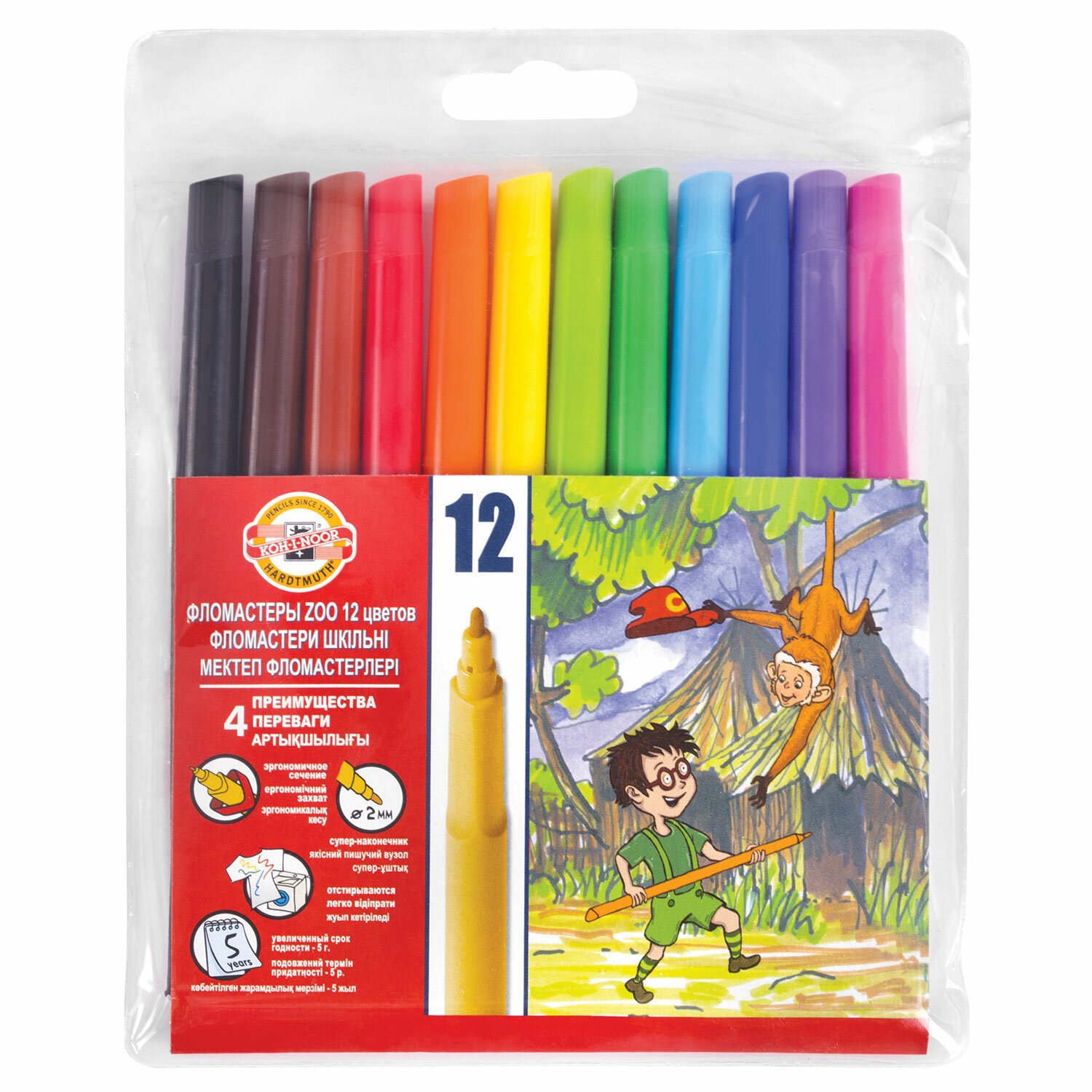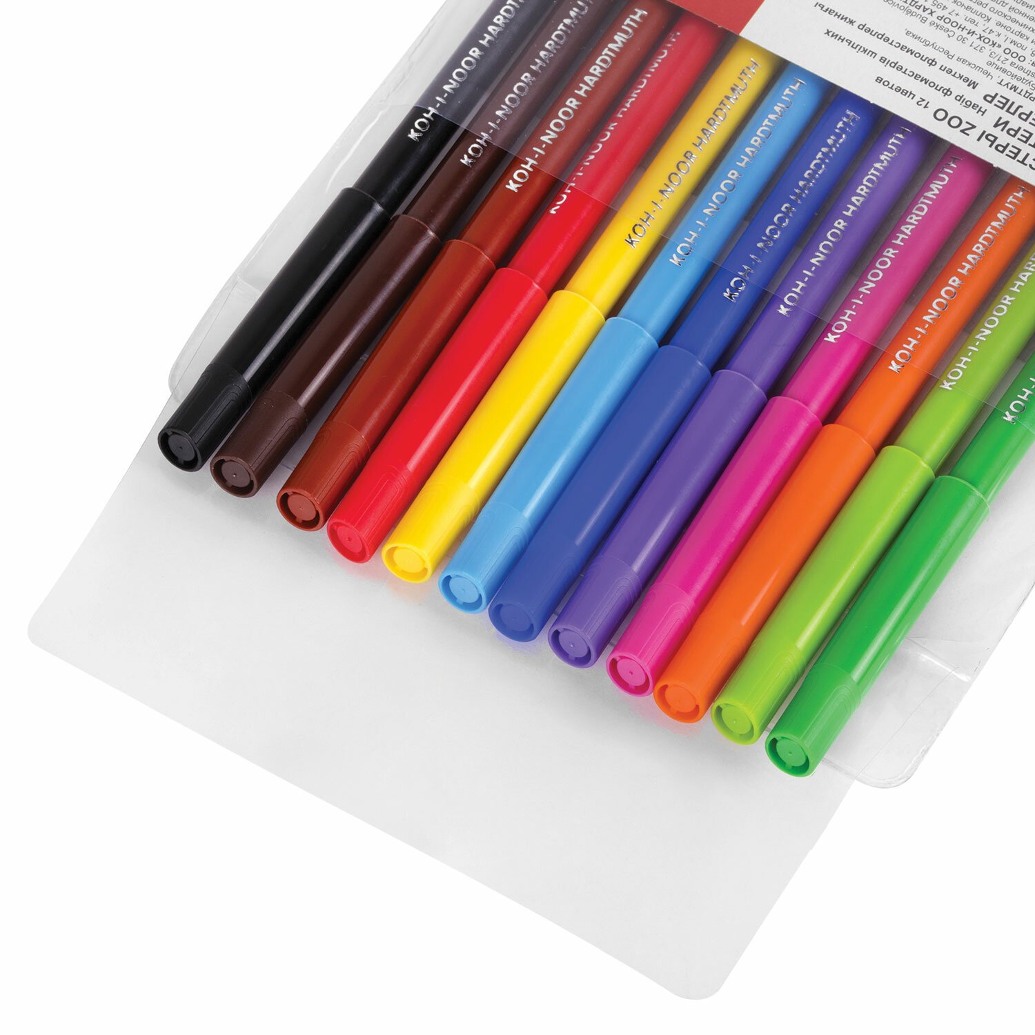 Фломастеры KOH-I-NOOR, 12 цветов, смываемые, трехгранные, пластиковая упаковка, европодвес, 771002AB04TERU