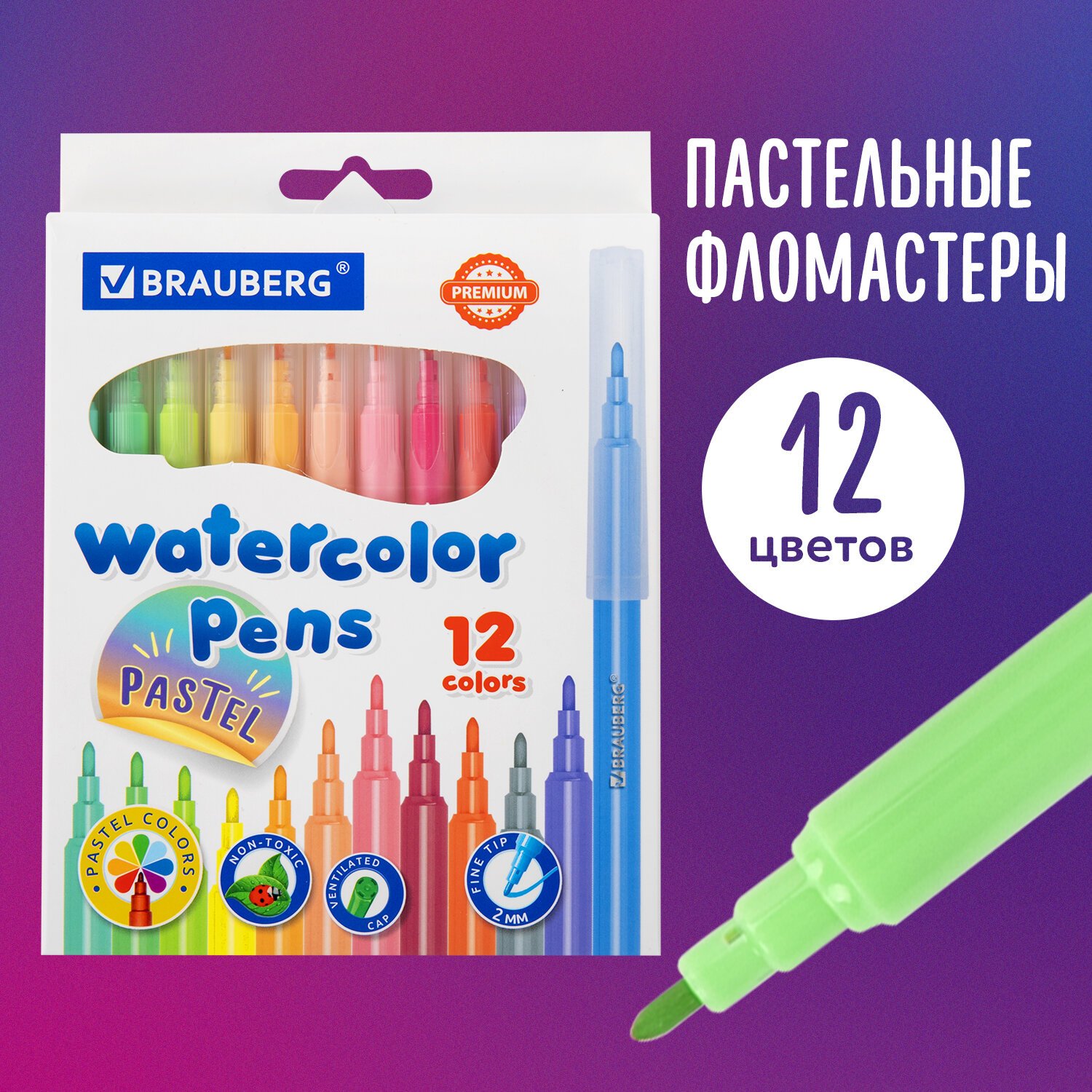 Фломастеры пастельные 12 цветов, вентилируемый колпачок BRAUBERG "PREMIUM", картонная коробка, 152197