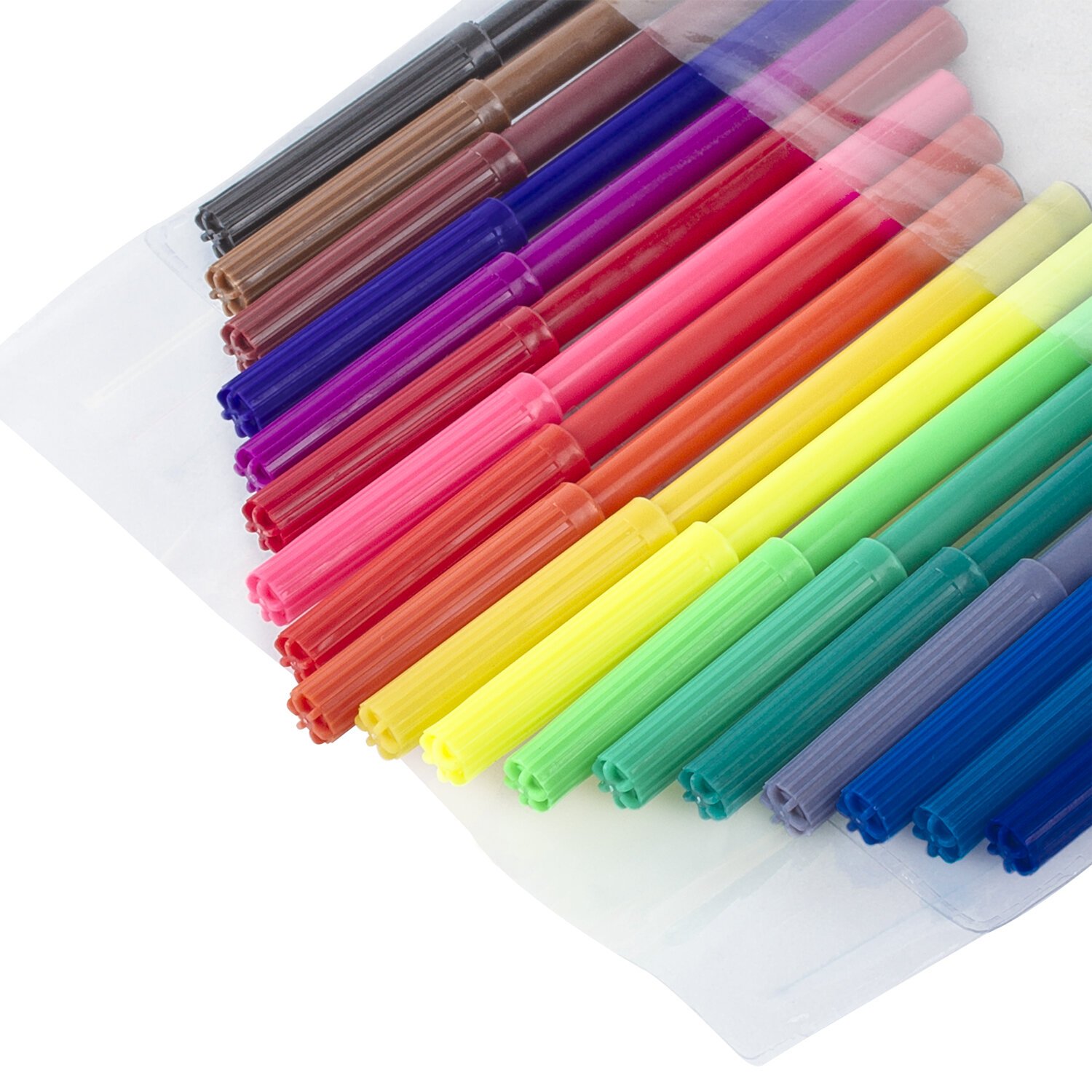 Обладают яркими цветами в количестве 18 штук. Удобная круглая форма корпуса, длина которого 126 мм, а диаметр - 7 мм. Благодаря толщине линии письма 1 мм и диаметру пишущего узла 1,8 мм процесс раскрашивания становится легким. Длина письма составляет 400 м: такого расхода хватит надолго. Фломастеры изготовлены на водной основе, поэтому они безопасны и легко смываются с большинства материалов и кожи. Полипропиленовый корпус значительно продлевает срок службы фломастеров. Колпачок имеет специальные прорези для вентиляции, которые способствуют прохождению воздуха при попадании в дыхательные пути малыша. Рекомендованы для детей от 3-х лет.