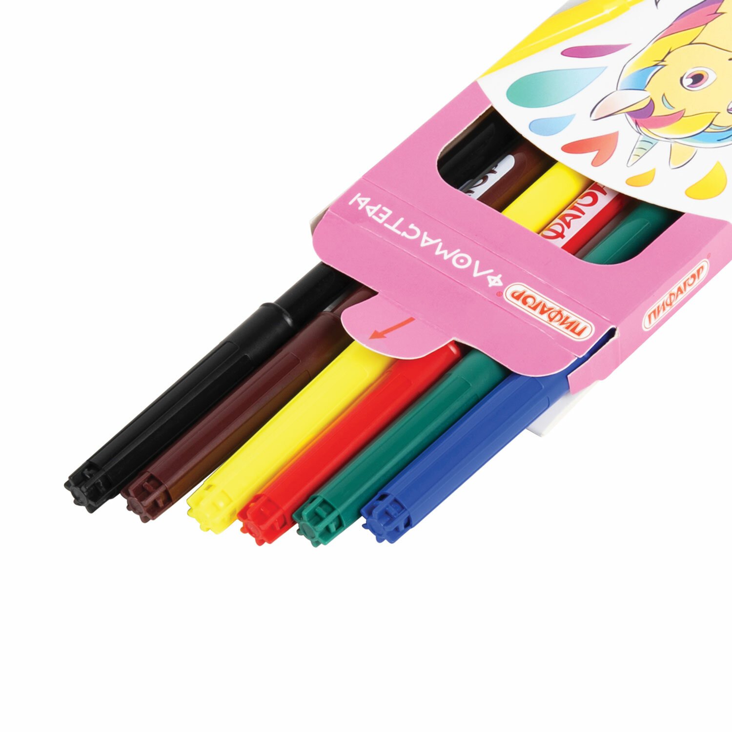 Фломастеры ПИФАГОР, 6 цветов, вентилируемый колпачок, 151089