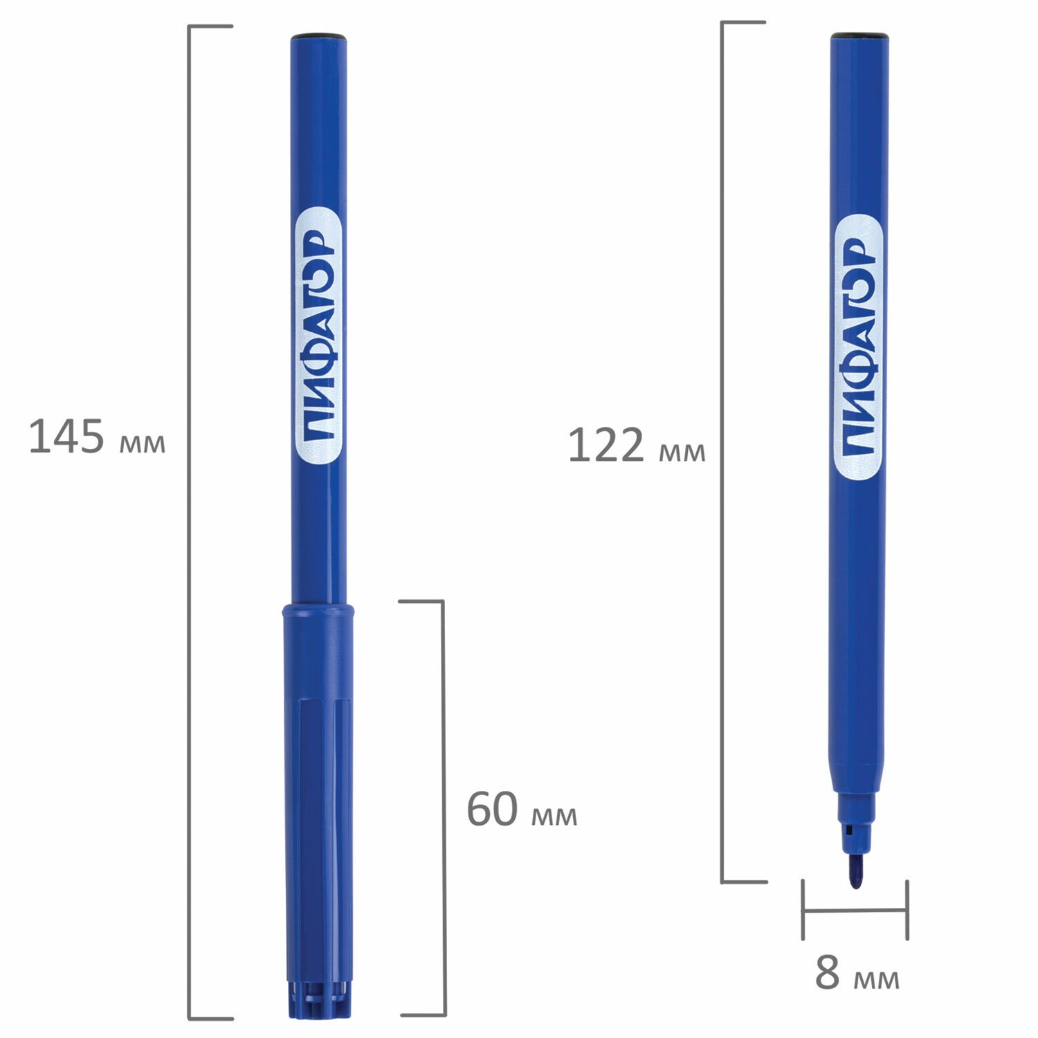 Обладают яркими цветами в количестве 6 штук. Длина корпуса удобной круглой формы составляет 145 мм, а диаметр - 8 мм. Благодаря толщине линии письма 1 мм и диаметру пишущего узла 1,8 мм процесс раскрашивания становится легким.