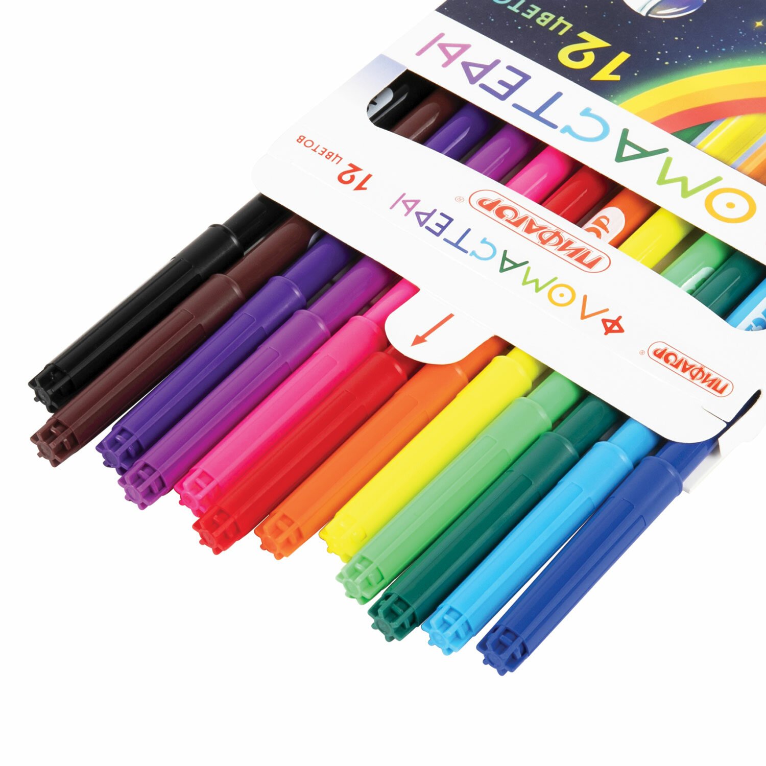 Фломастеры ПИФАГОР "Космическая одиссея", 12 цветов, вентилируемый колпачок, 152444
