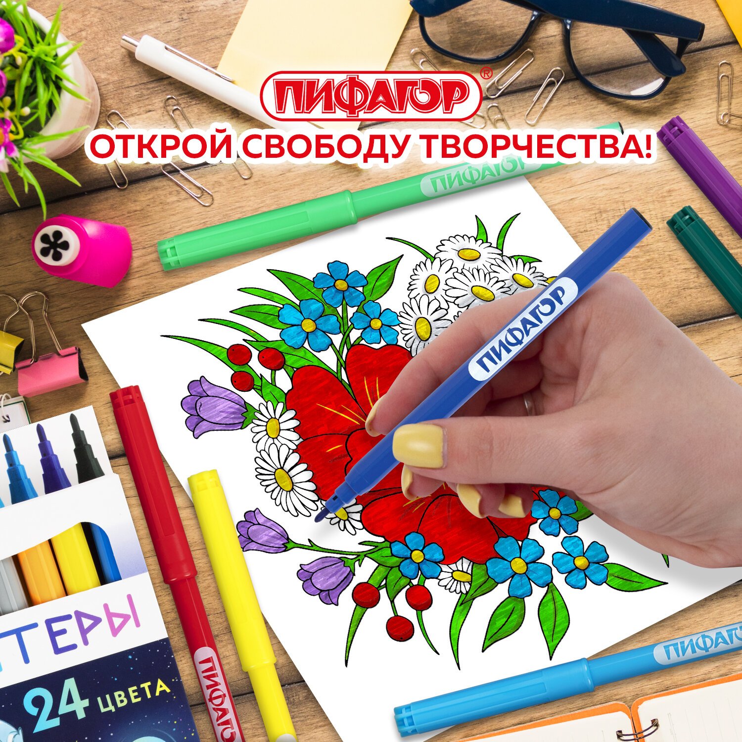 Фломастеры ПИФАГОР "Космическая одиссея", 24 цвета, вентилируемый колпачок, 152446