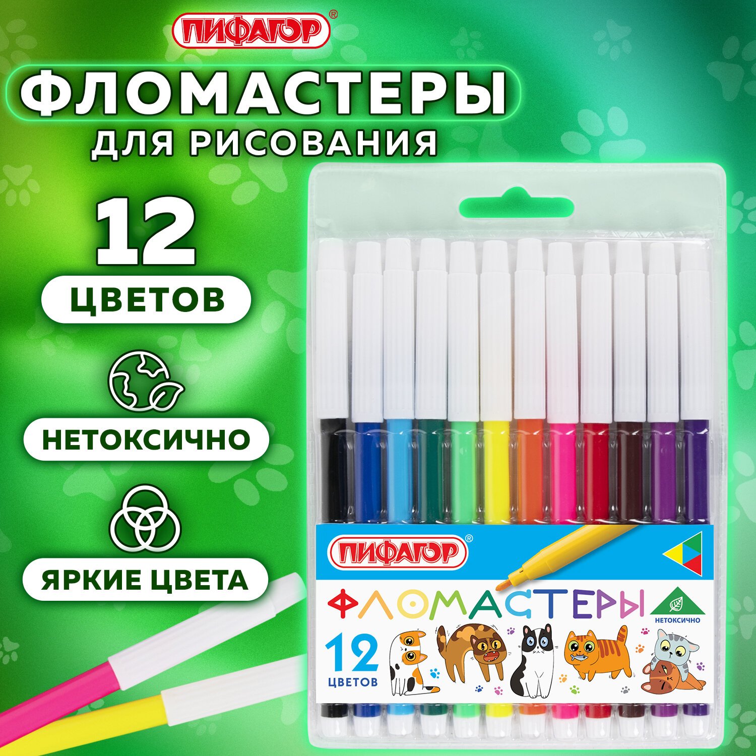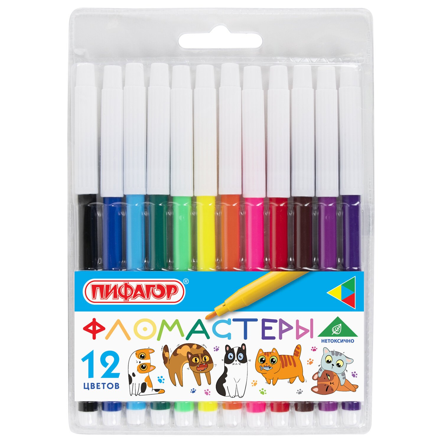 Фломастеры ПИФАГОР "ВЕСЕЛЫЕ ПИТОМЦЫ", 12 цветов, невентилируемый колпачок, 152452