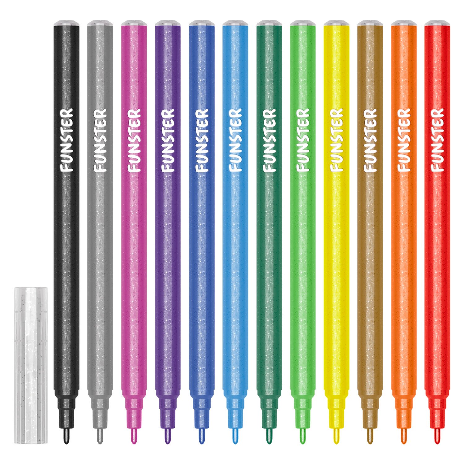 Фломастеры с блестками FUNSTER (ФАНСТЕР) "GLITTER" 12 цветов, ударопрочный наконечник, 152629