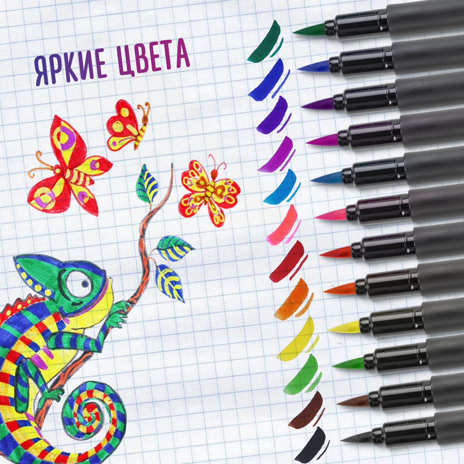 Фломастеры с наконечником-кистью 12 цветов, вентилируемый колпачок, BRAUBERG "PREMIUM", 152195