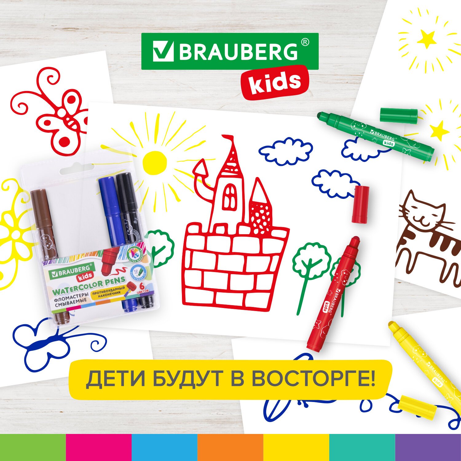 Фломастеры смываемые с противоударным наконечником BRAUBERG KIDS отлично подходят даже для самых юных художников!