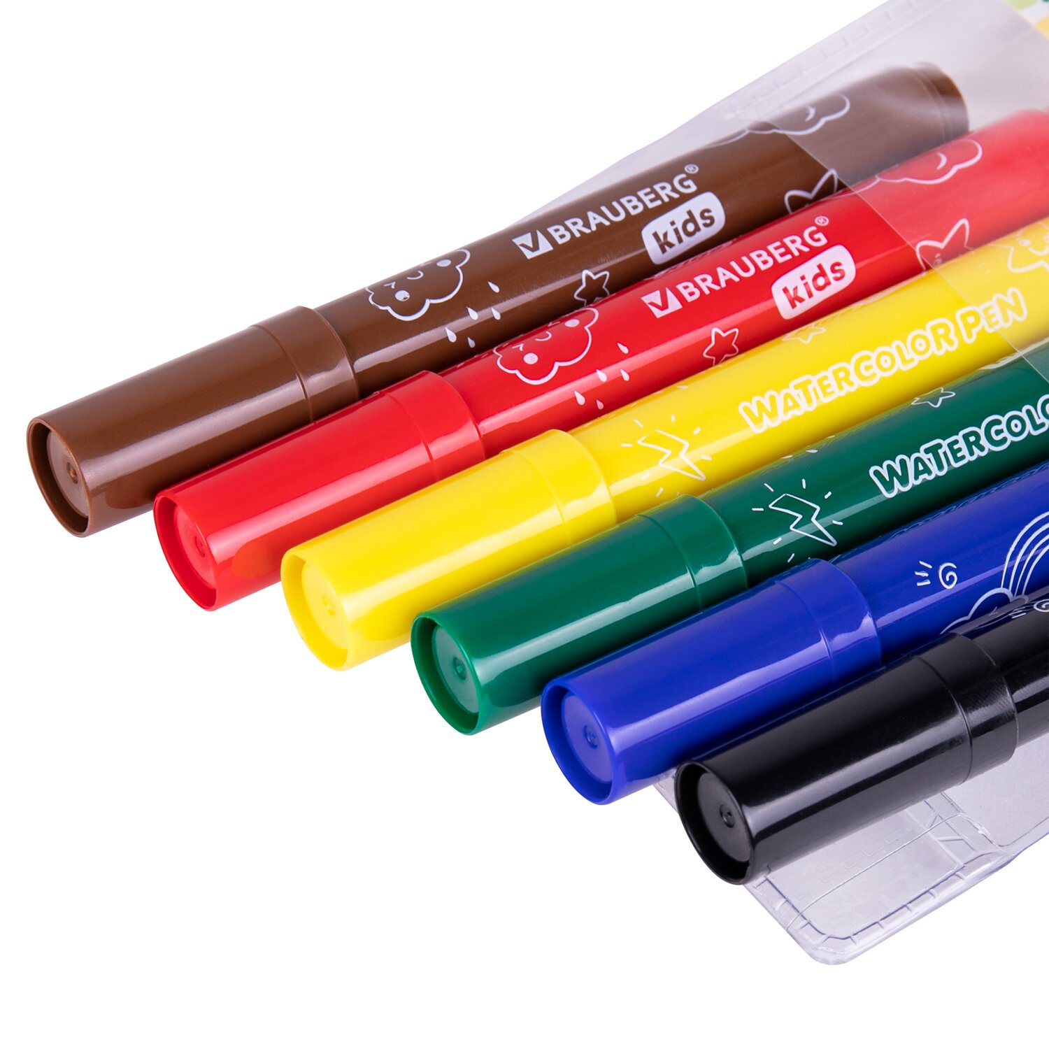 Фломастеры смываемые детские, противоударный наконечник, 6 цветов, BRAUBERG KIDS, ПВХ-упаковка с европодвесом, 152178