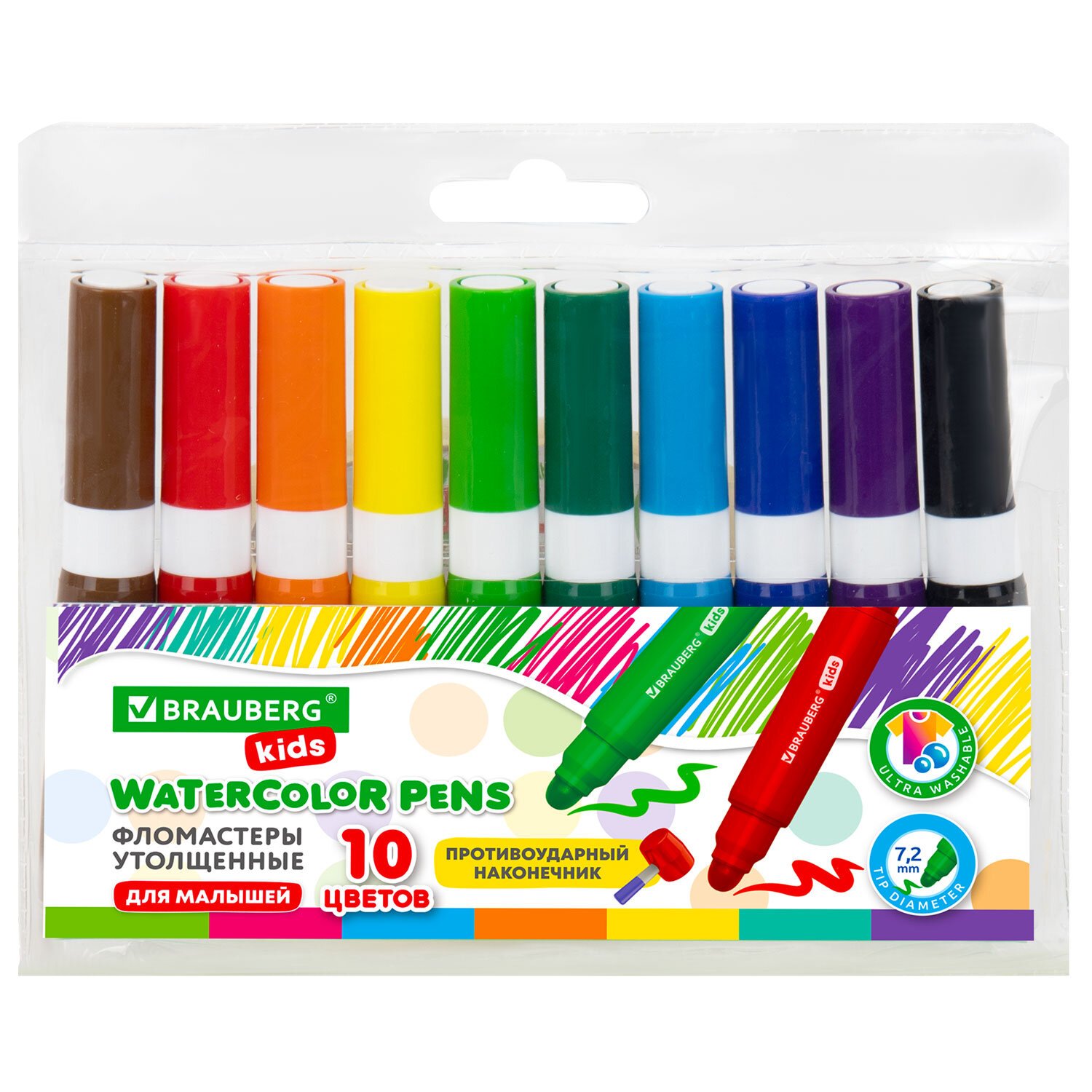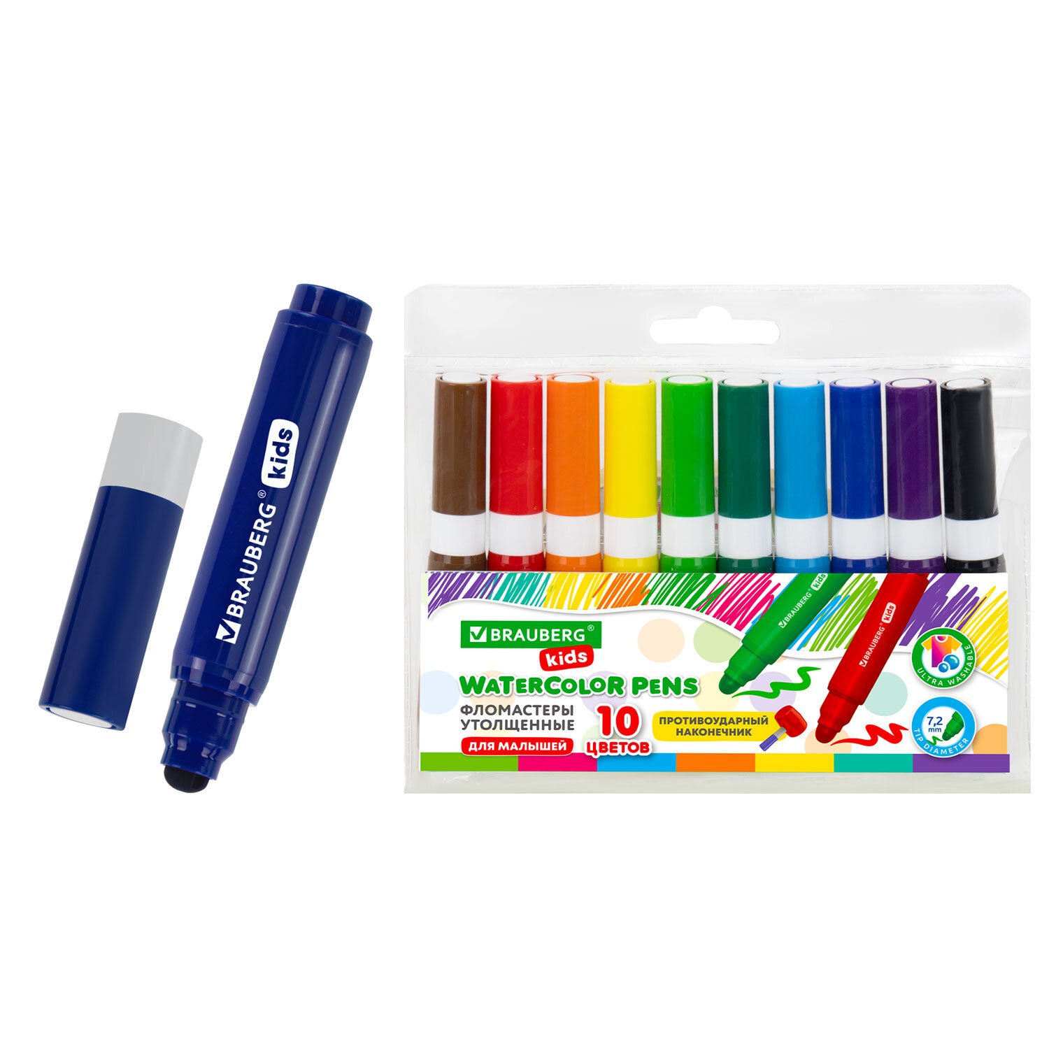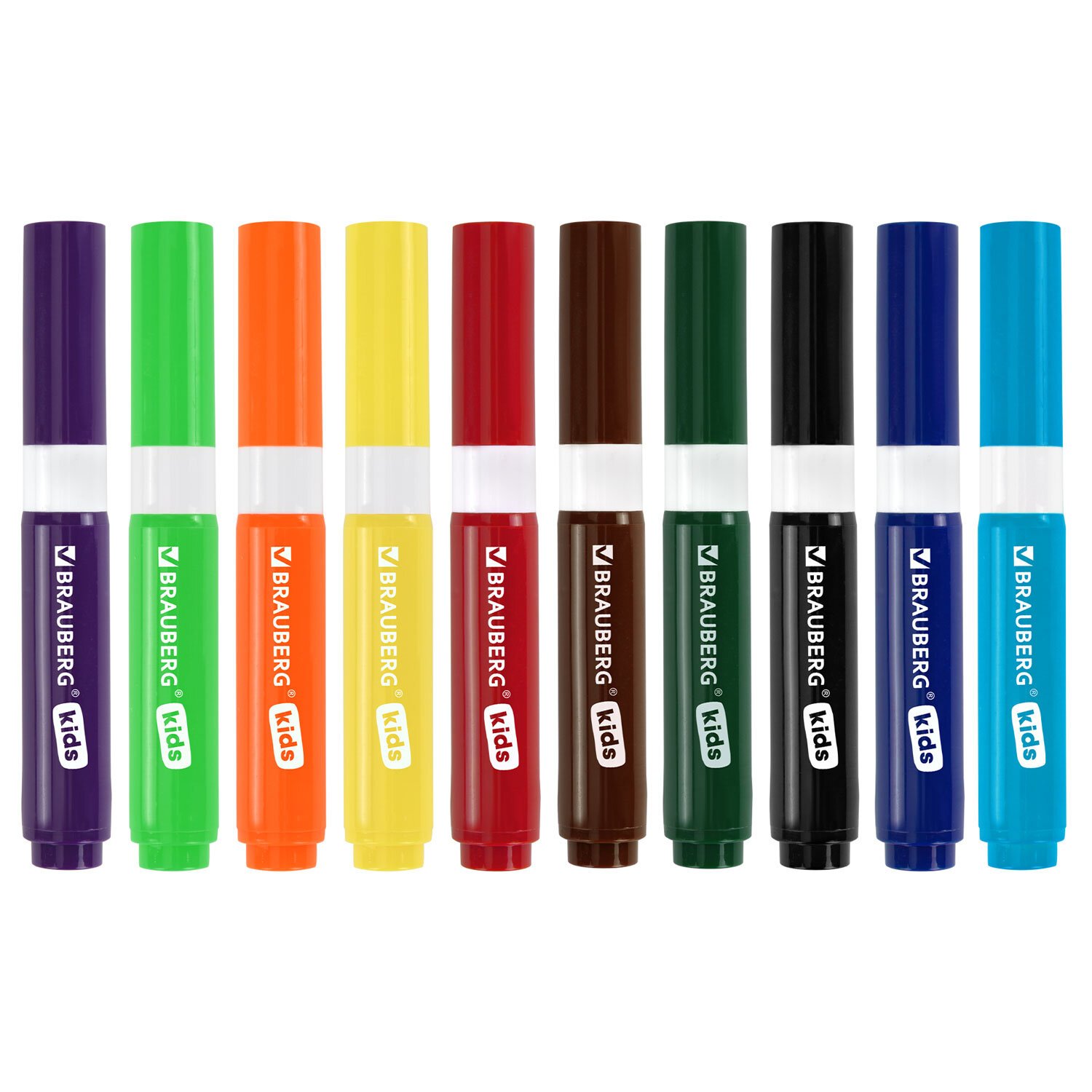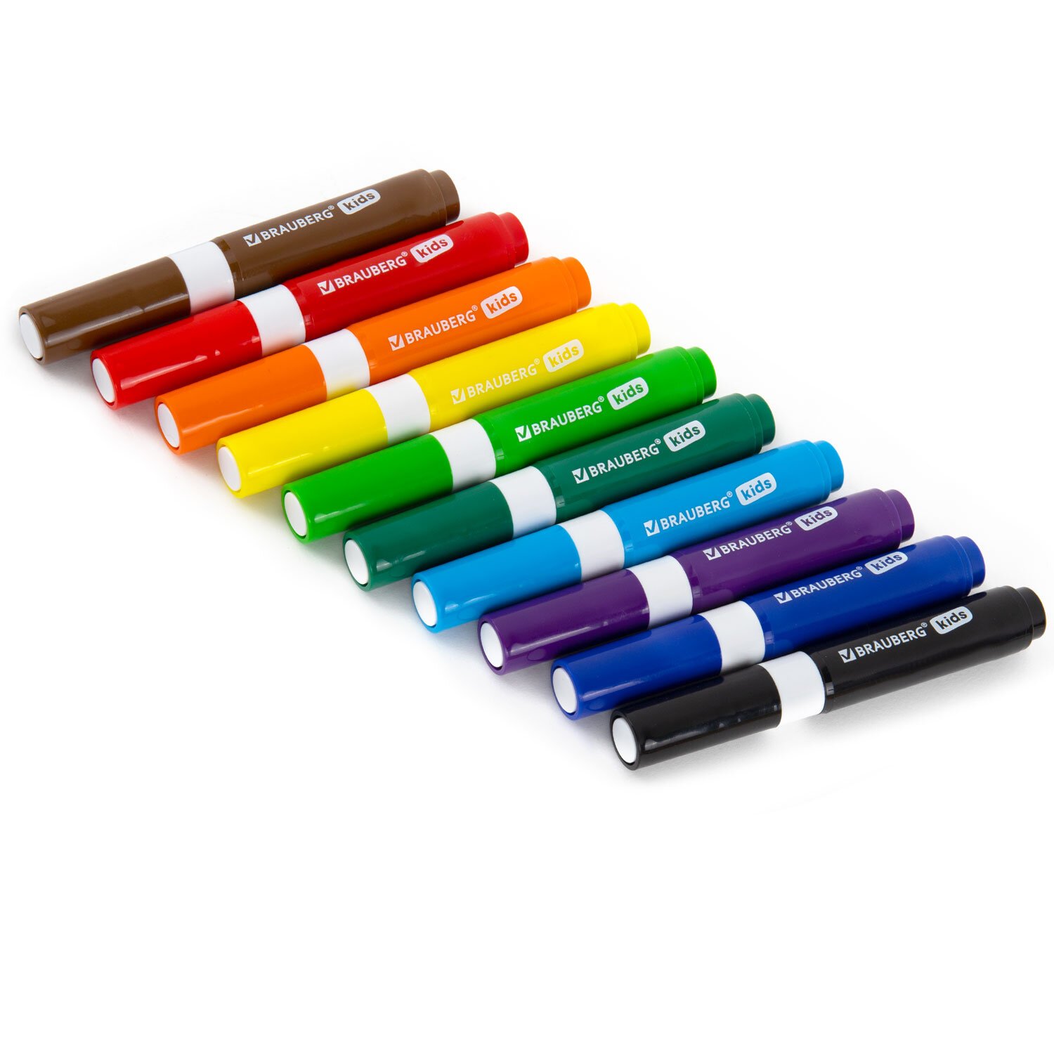 Фломастеры супер смываемые толстые для малышей BRAUBERG KIDS, 10 цветов, ПВХ-упаковка, 152605