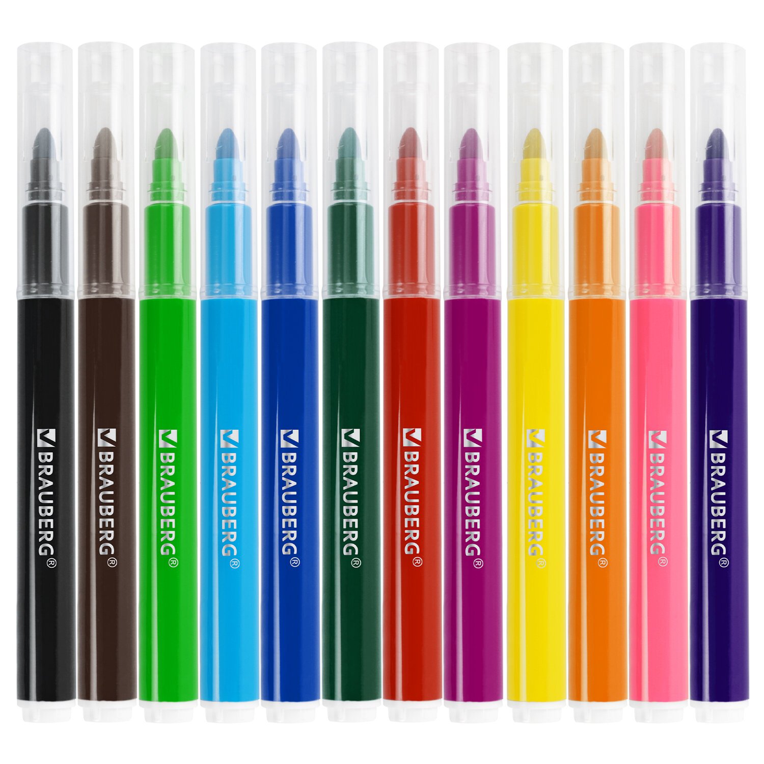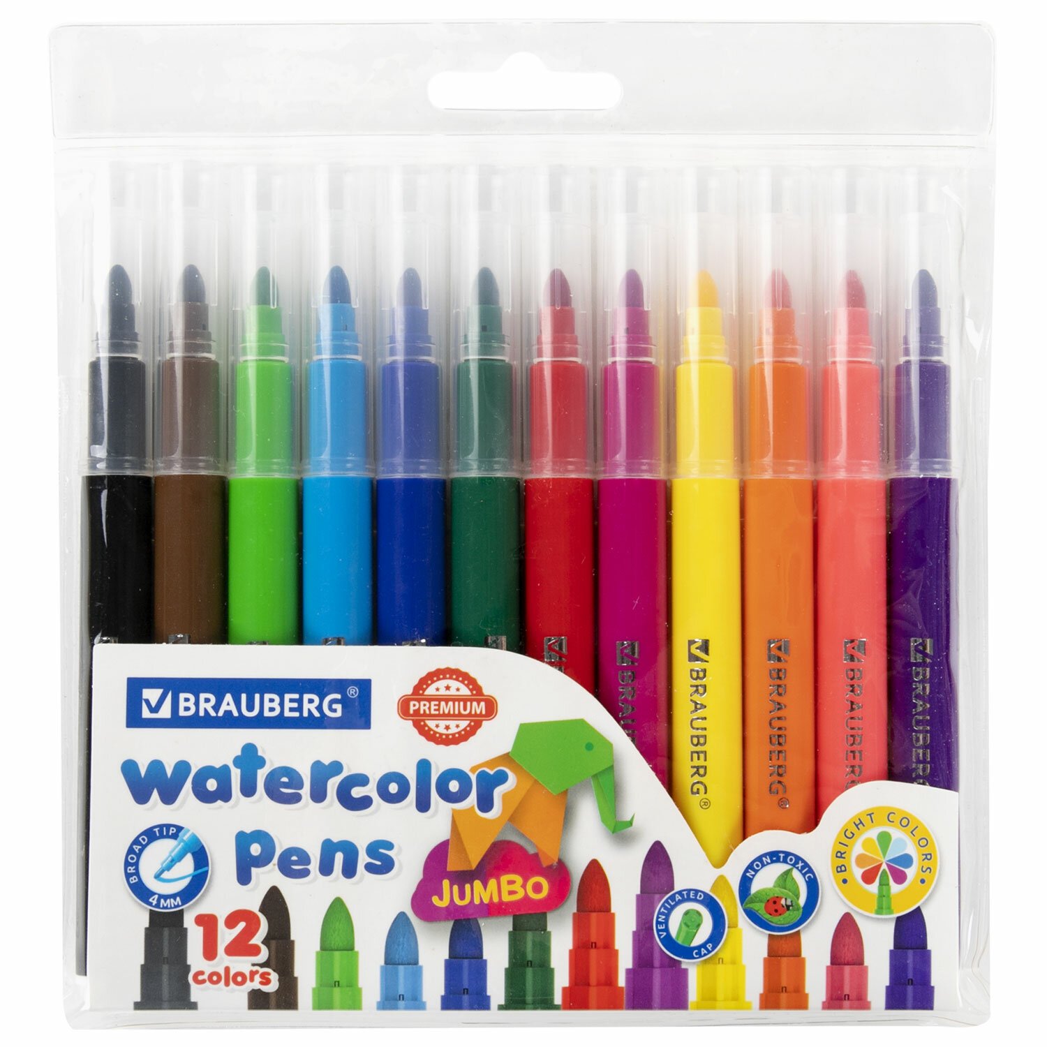 Фломастеры BRAUBERG PREMIUM - набор из 12 круглых утолщенных фломастеров на водной основе в ПВХ-упаковке для рисования.