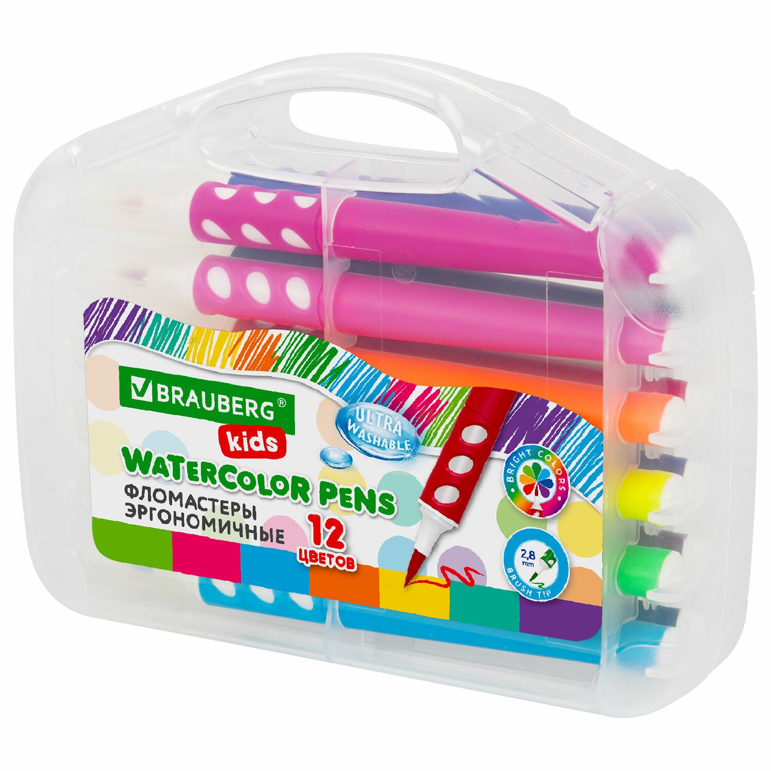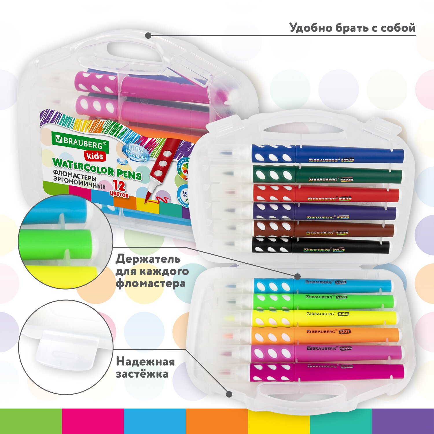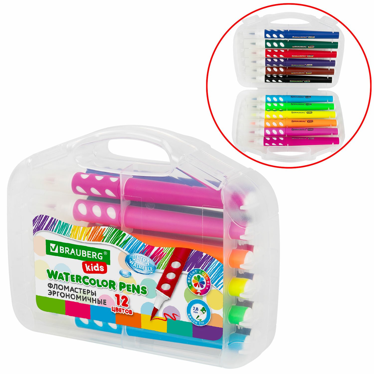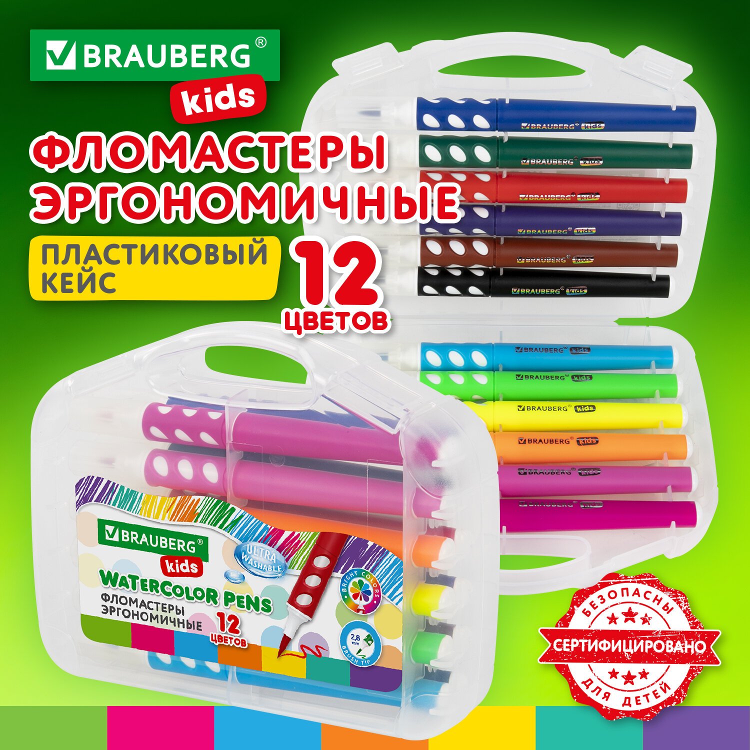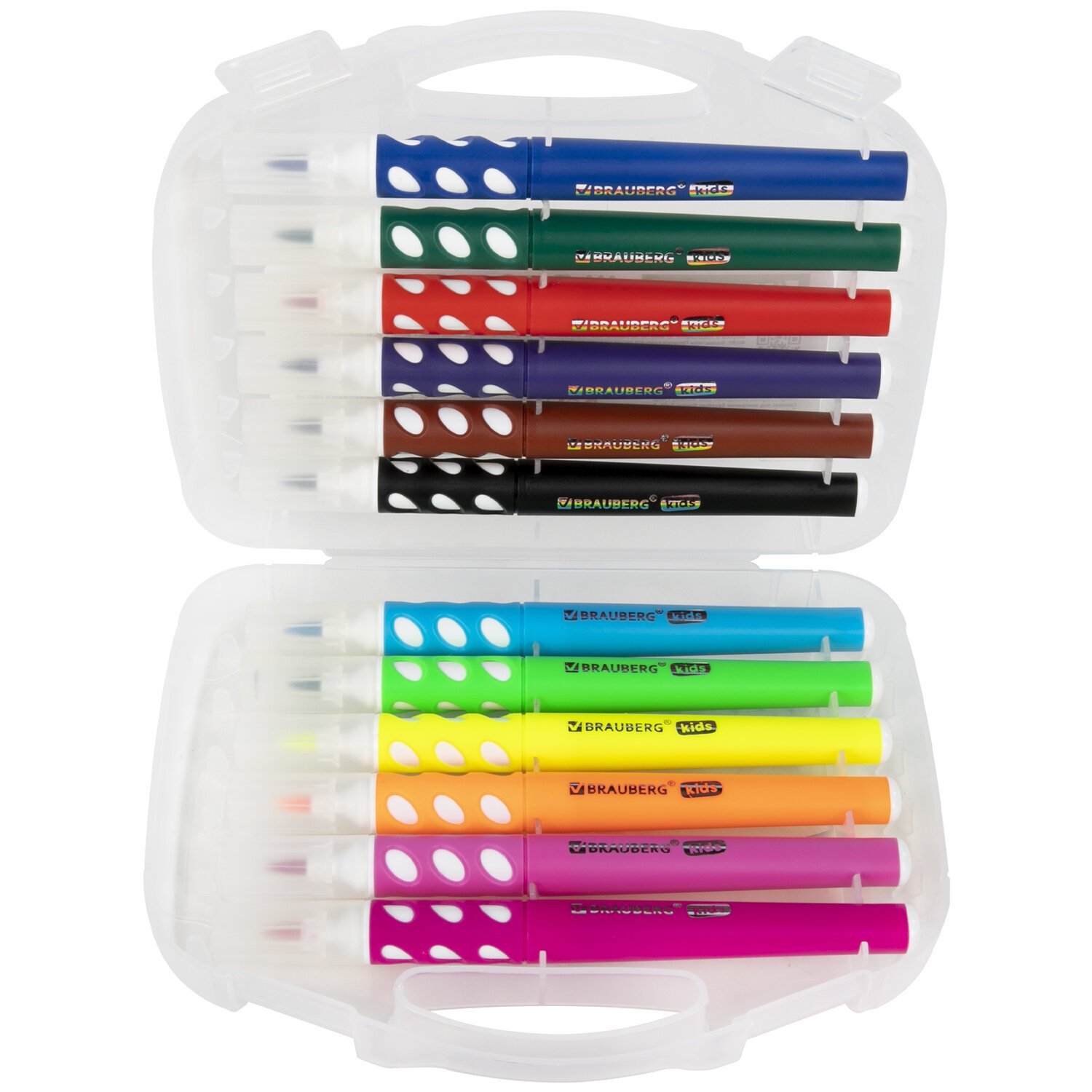 Фломастеры в суперкейсе эргономичные 12 цветов, вентилируемый колпачок, BRAUBERG KIDS, 152184