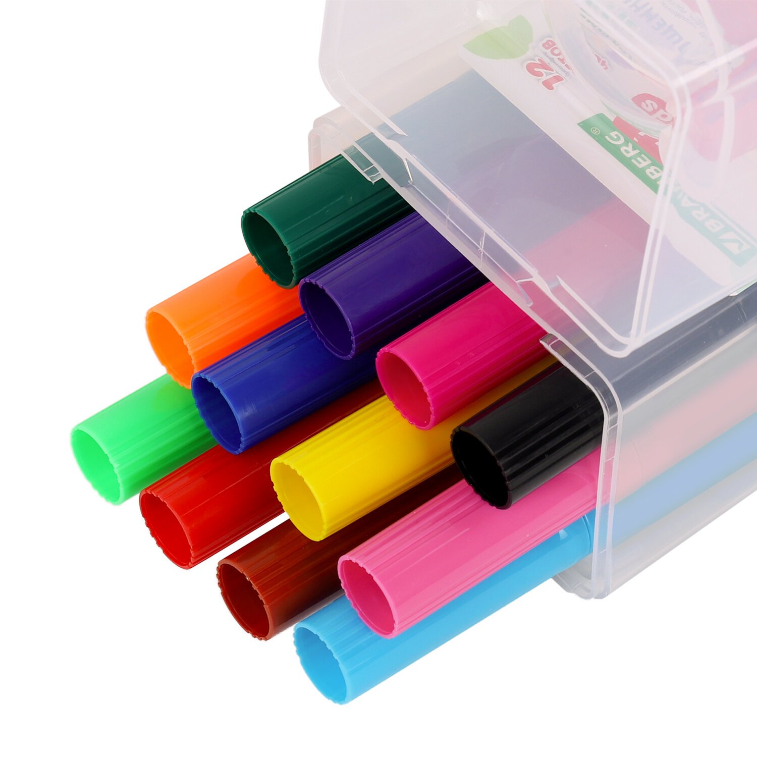 Фломастеры в суперкейсе утолщенные 12 цветов, вентилируемый колпачок, BRAUBERG KIDS, 152187