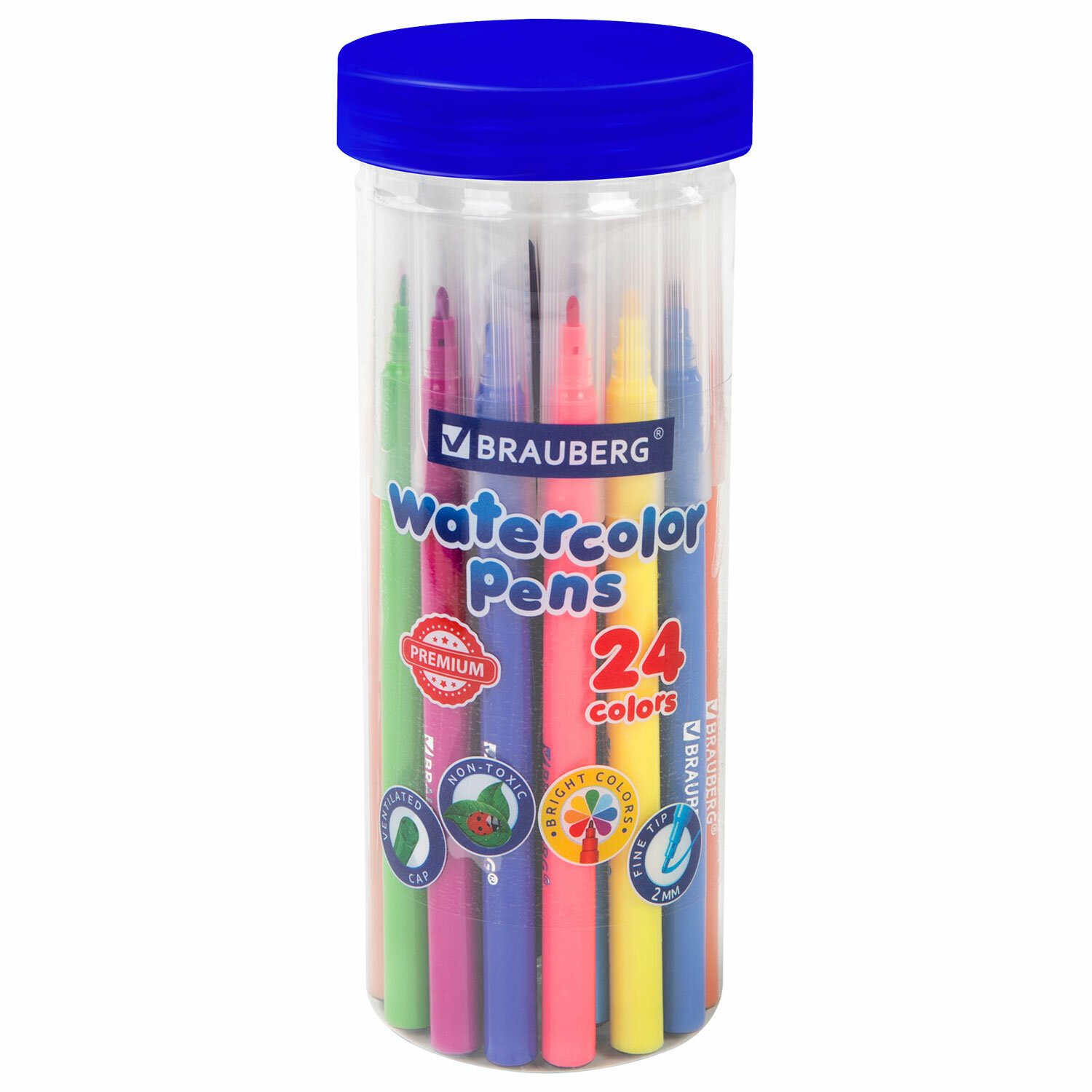 Фломастеры BRAUBERG "PREMIUM", 24 цвета, КОРПУС С ПЕЧАТЬЮ, вентилируемый колпачок, ПВХ-упаковка с европодвесом, 151944