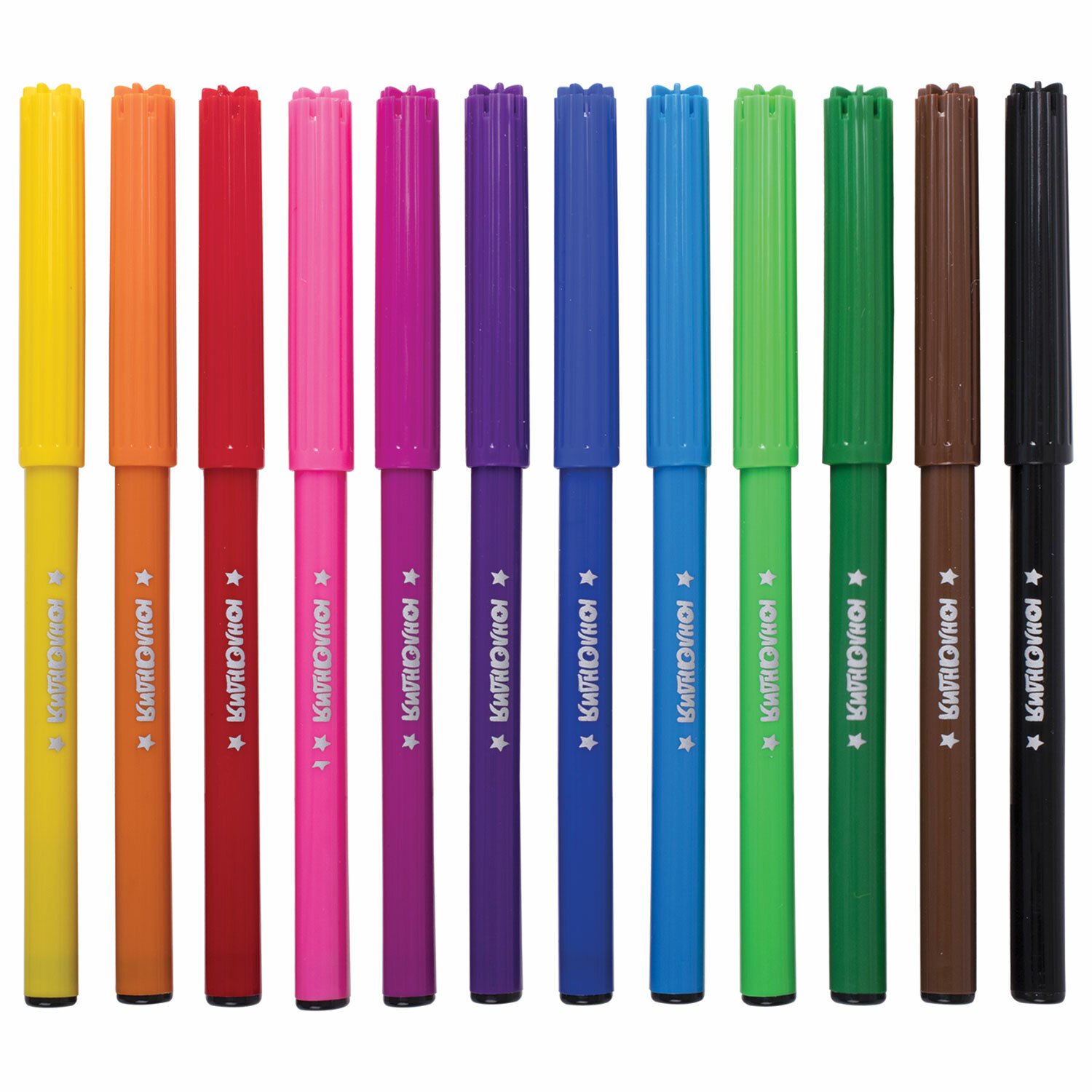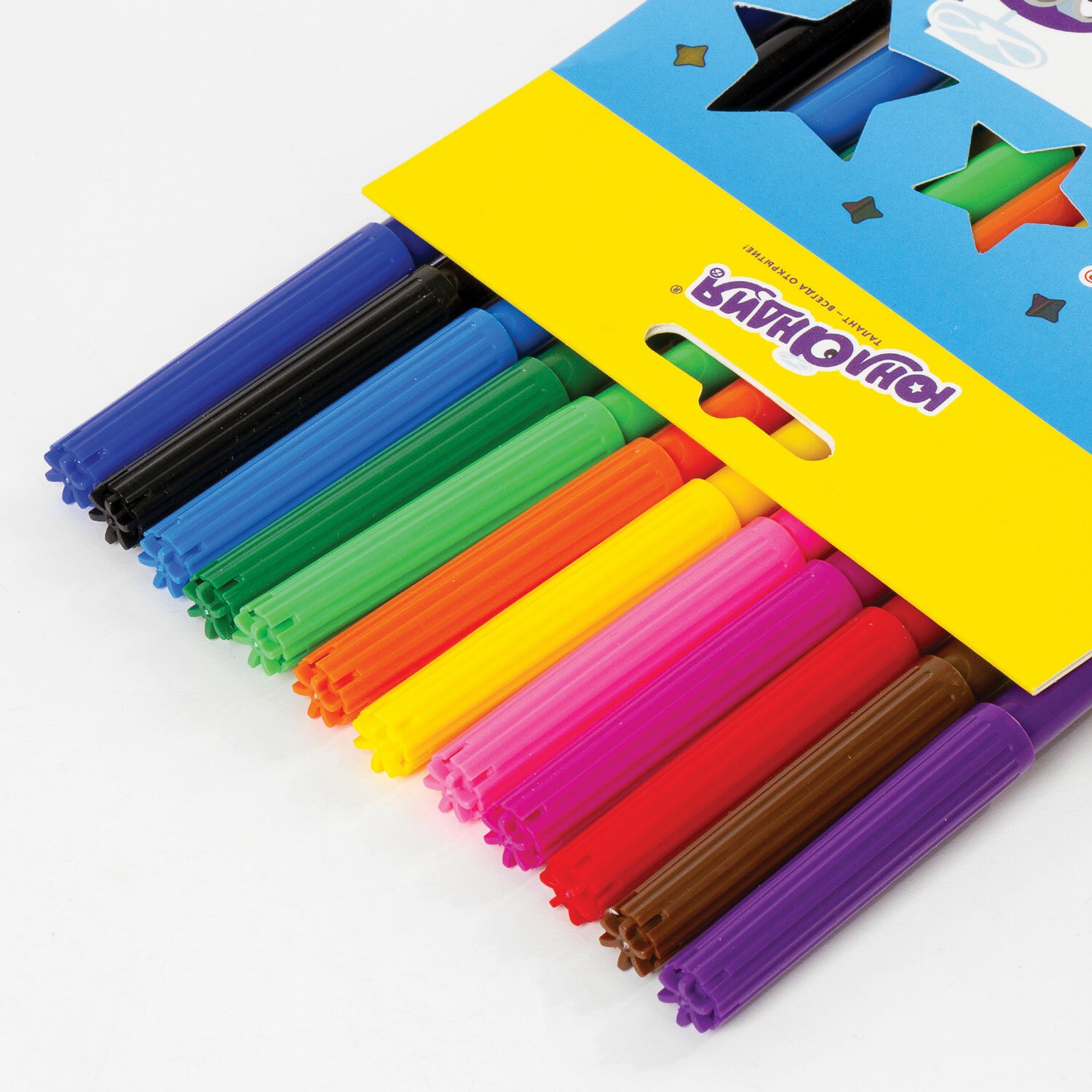 Обладают яркими насыщенными цветами в количестве 12 штук. Удобная круглая форма корпуса, длина которого 139 мм, а диаметр - 8,5 мм. Благодаря толщине линии письма 1 мм и диаметру пишущего узла 2,1 мм процесс раскрашивания становится легким. Длина письма составляет 600 м: такого расхода хватит надолго. Фломастеры изготовлены на водной основе, поэтому они безопасны и легко смываются с большинства материалов и кожи. Наконечник, устойчивый к продавливанию, не проваливается внутрь корпуса и не деформируется даже при сильном нажатии. Полипропиленовый корпус значительно продлевает срок службы фломастеров. Колпачок имеет специальные прорези для вентиляции, которые способствуют прохождению воздуха при попадании в дыхательные пути малыша. Рекомендованы для детей от 3-х лет.