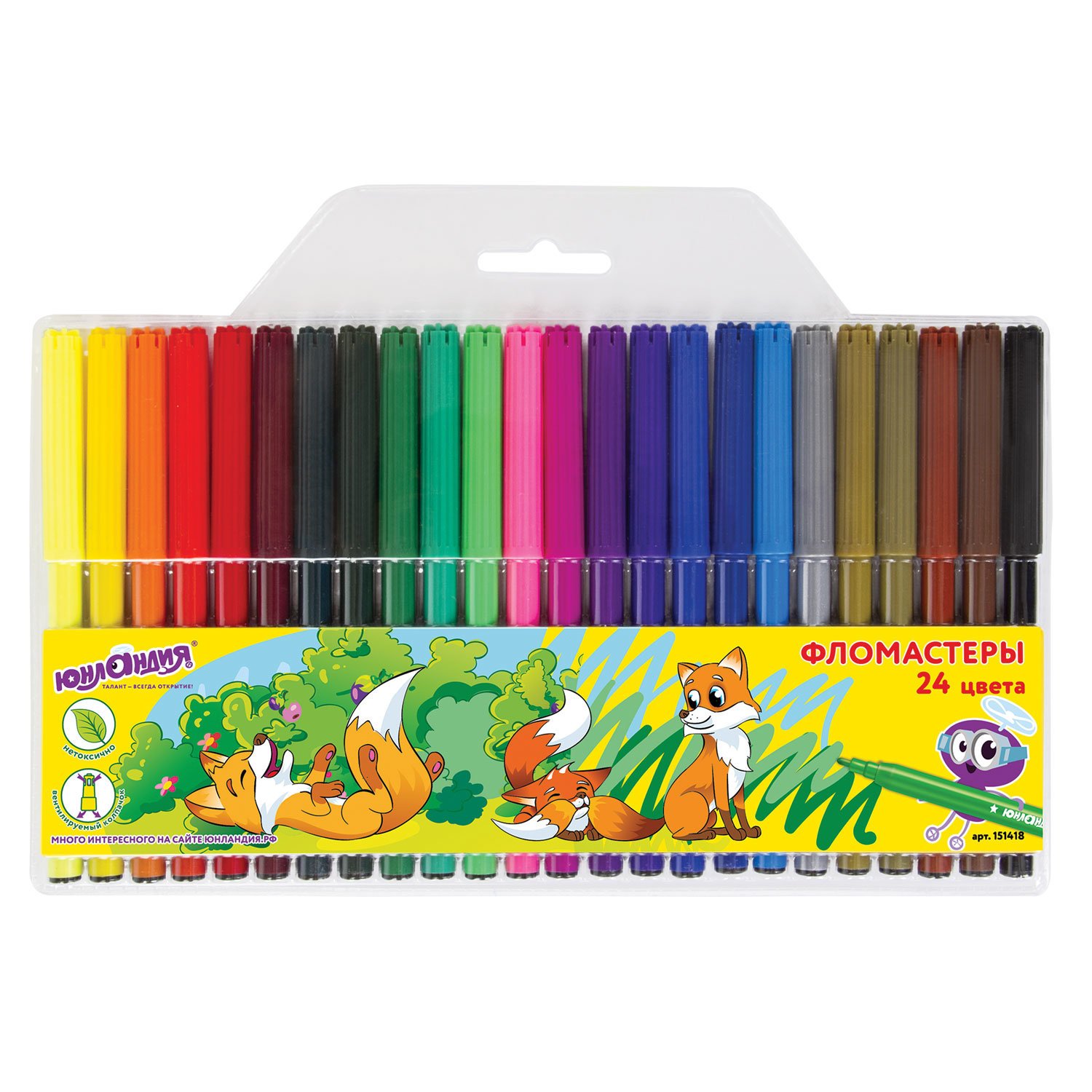 Фломастеры ЮНЛАНДИЯ 24 цвета "КЛАССНЫЕ!", вентилируемый колпачок, ПВХ, 152480