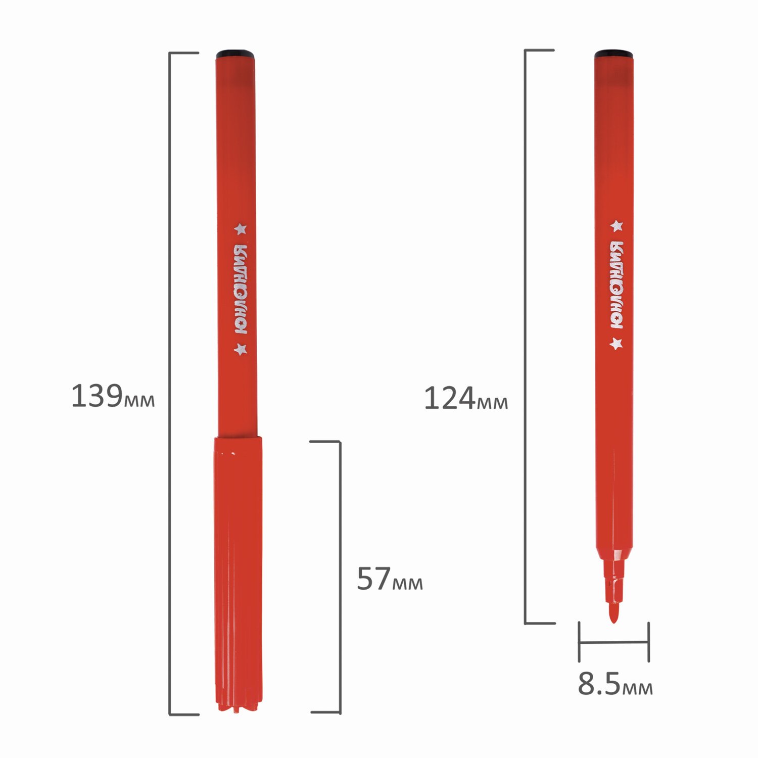Обладают яркими насыщенными цветами в количестве 24 штук. Удобная круглая форма корпуса, длина которого 139 мм, а диаметр - 8,5 мм. Благодаря толщине линии письма 1 мм и диаметру пишущего узла 2,1 мм процесс раскрашивания становится легким. Длина письма составляет 600 м: такого расхода хватит надолго. Фломастеры изготовлены на водной основе, поэтому они безопасны и легко смываются с большинства материалов и кожи. Наконечник, устойчивый к продавливанию, не проваливается внутрь корпуса и не деформируется даже при сильном нажатии. Полипропиленовый корпус значительно продлевает срок службы фломастеров. Колпачок имеет специальные прорези для вентиляции, которые способствуют прохождению воздуха при попадании в дыхательные пути малыша. Рекомендованы для детей от 3-х лет.