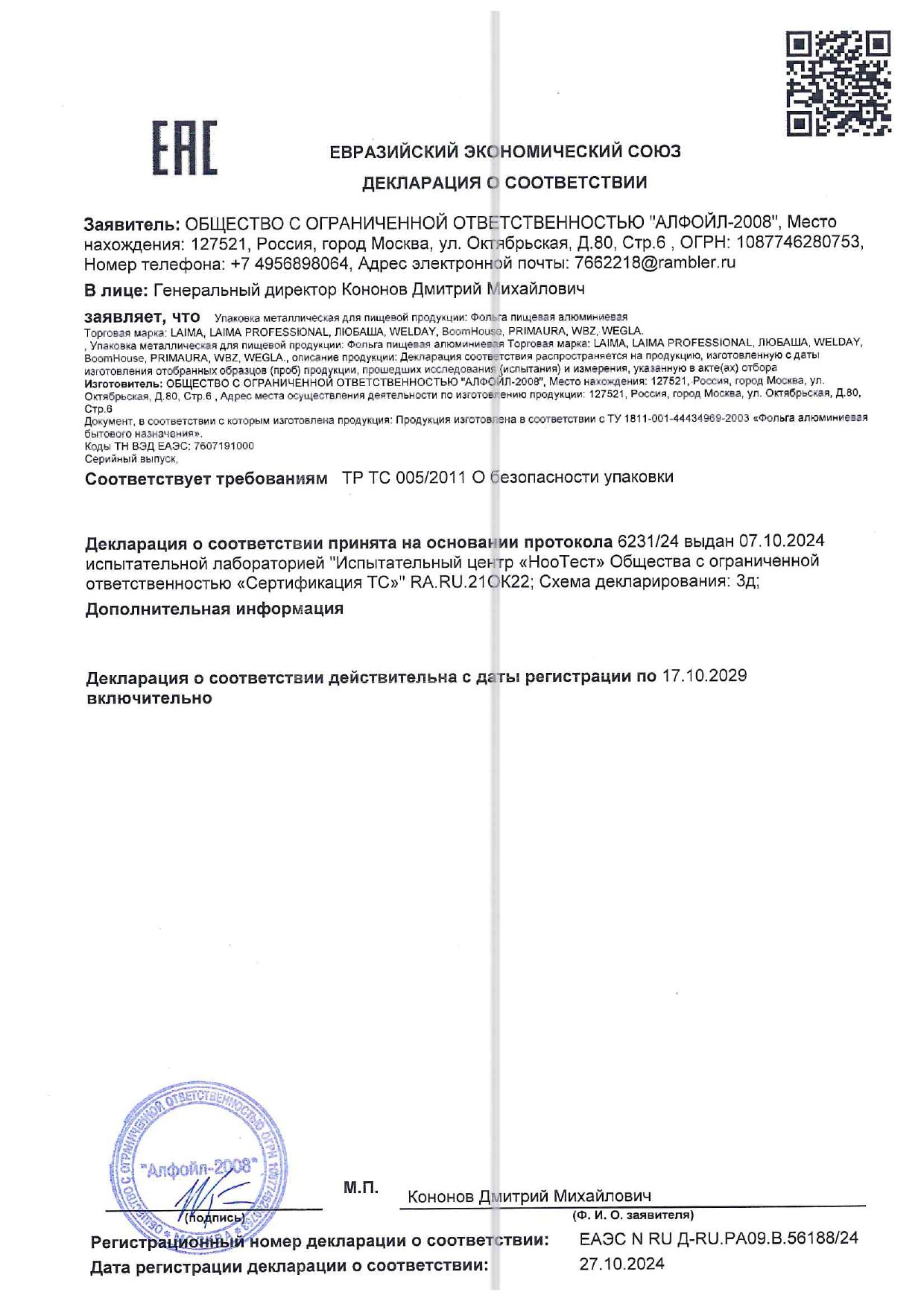 Фольга пищевая алюминиевая прочная, 29 см х 50 м, толщина 11 мкм, LAIMA, 607804
