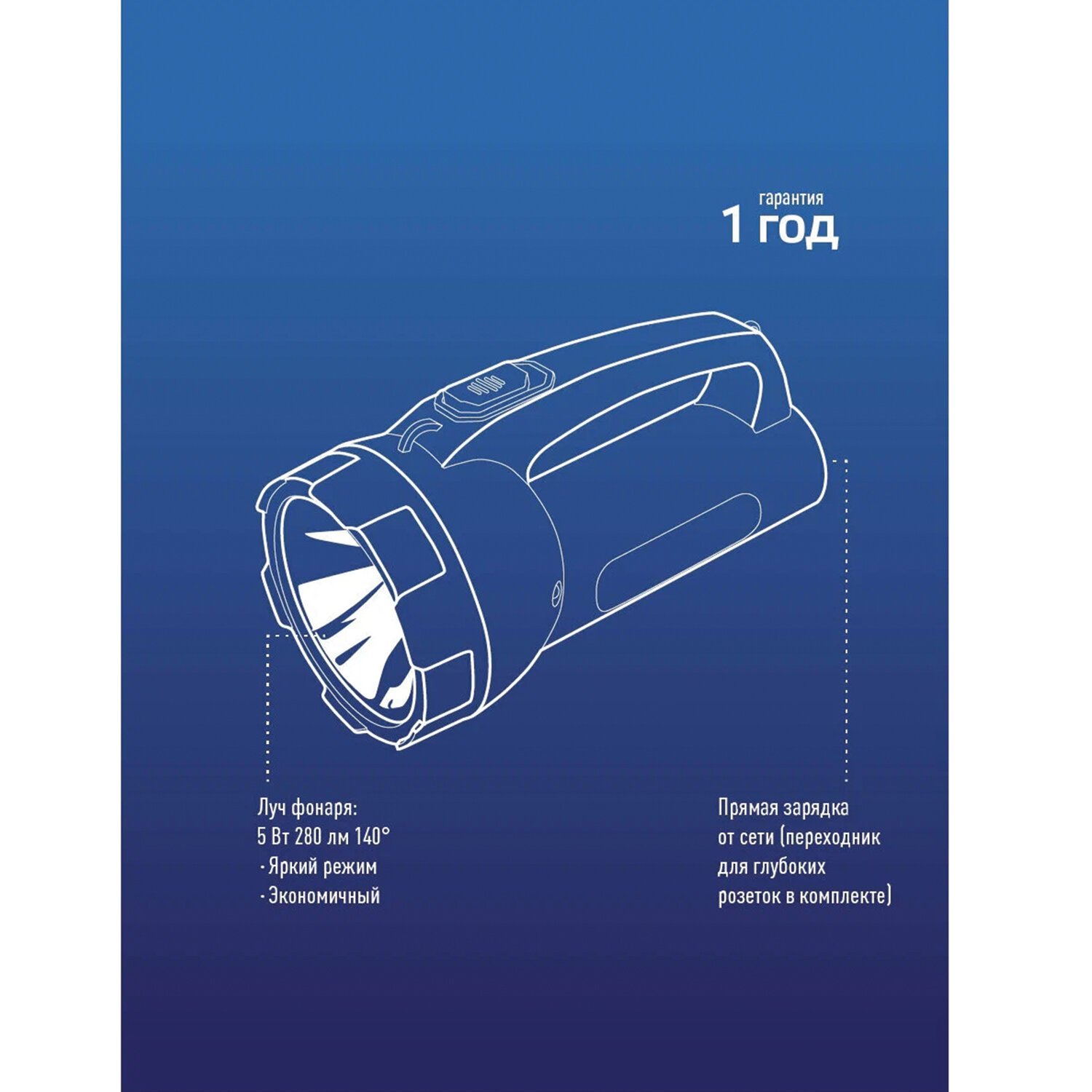 Фонарь аккумуляторный КОСМОС 5 Вт LED, выдвижная вилка, заряд от сети, KOCAc9105WLED