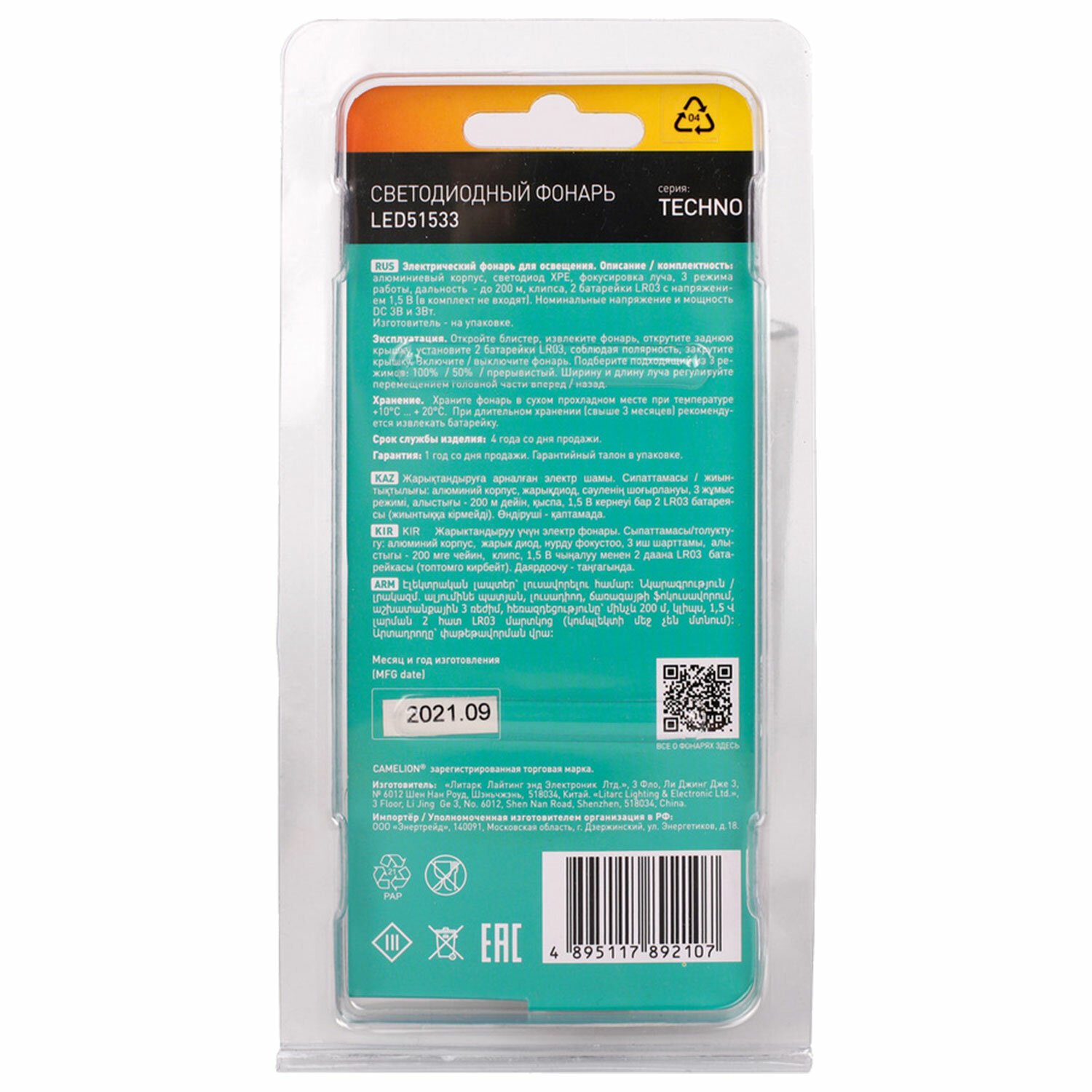 Фонарь CAMELION XP-E, ЯРКИЙ, ZOOM, 3 режима, питание 2хААА (не в комплекте), LED51533