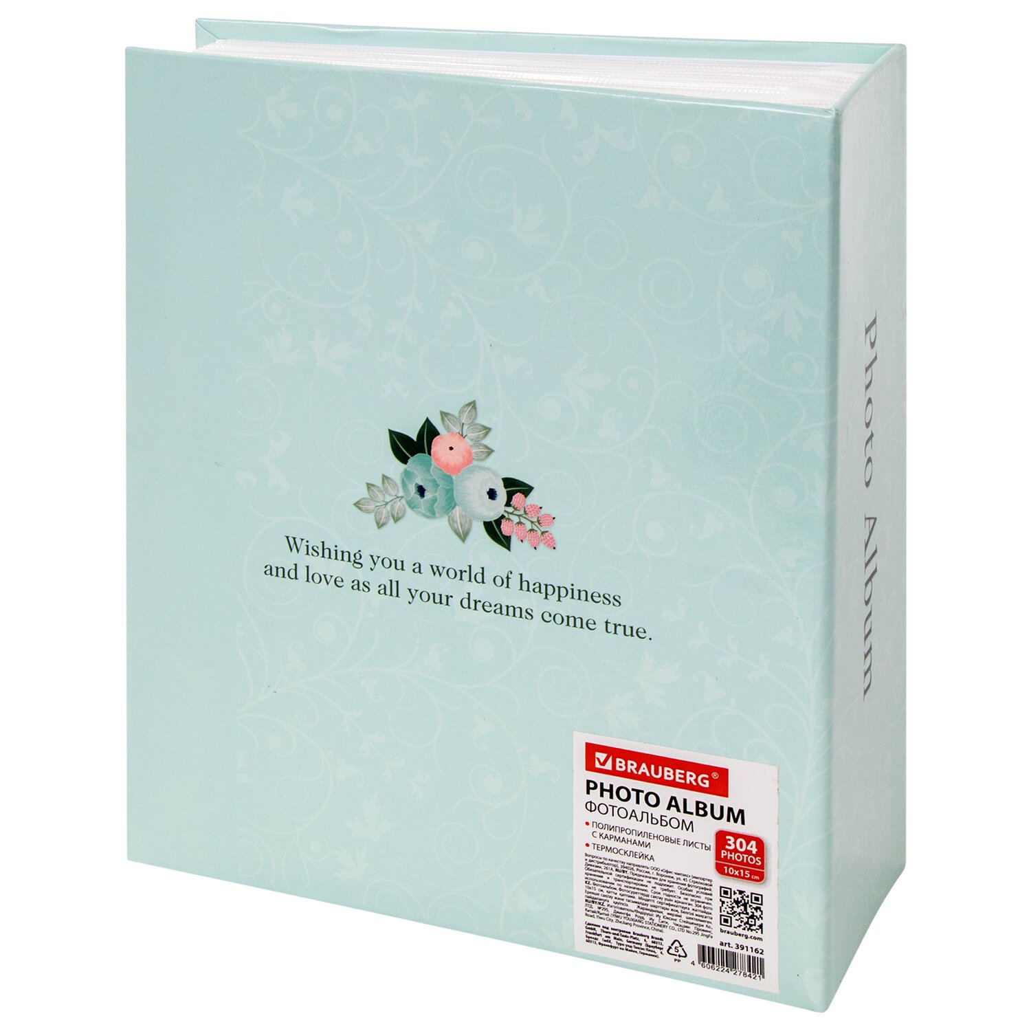 Фотоальбом BRAUBERG "Цветочный узор" на 304 фото 10х15 м, твердая обложка, термосклейка, 391162