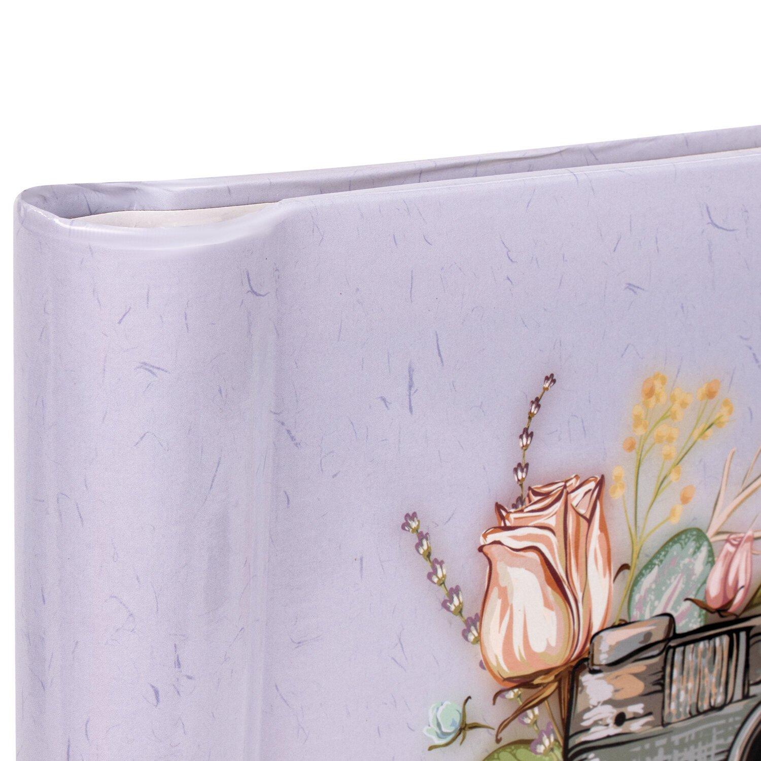 Состоит из 20 магнитных листов размером 23х28 см, что позволяет комбинировать и размещать до 120 фотографий различных форматов: 18х24 см, 10х15 см, 13х18 см. Обложка фотоальбома выполнена в лиловых тонах с изображением фотоаппарата. Способ крепления страниц - спираль. Размер альбома - 29х25 см.