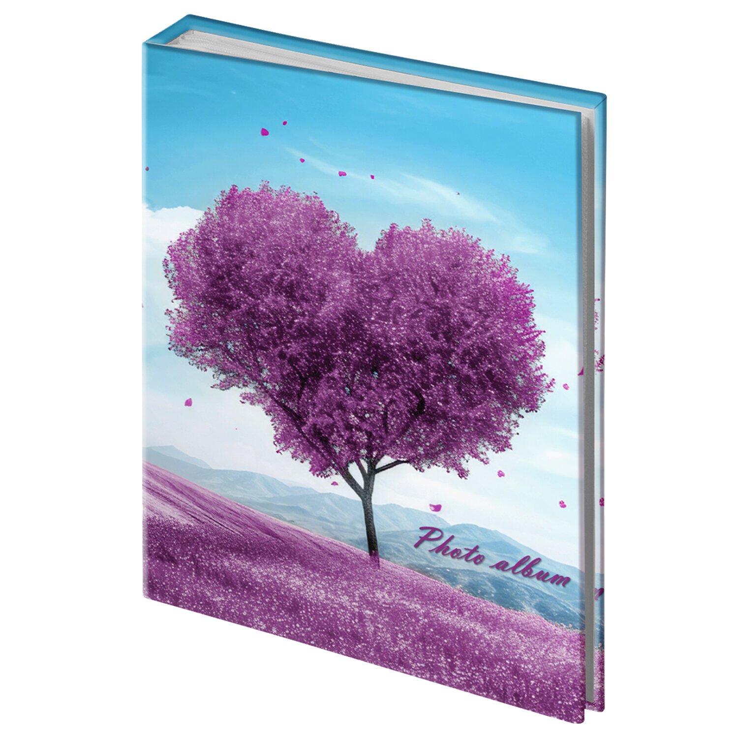 Состоит из 50 полипропиленовых листов размером 12х15,15 см с карманами и вмещает 100 фотографий размером 10х15 см по 2 штуки на странице. Обложка фотоальбома выполнена в романтическом стиле, а его листы склеены в единый блок. Размер – 13х17 см.
